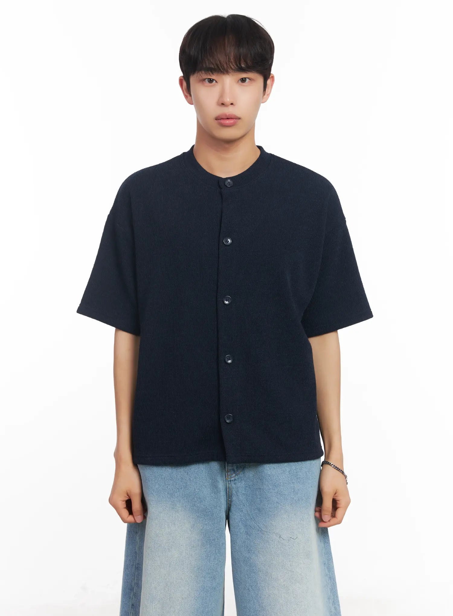 Men's Short-Sleeve Buttoned Sweater IU518