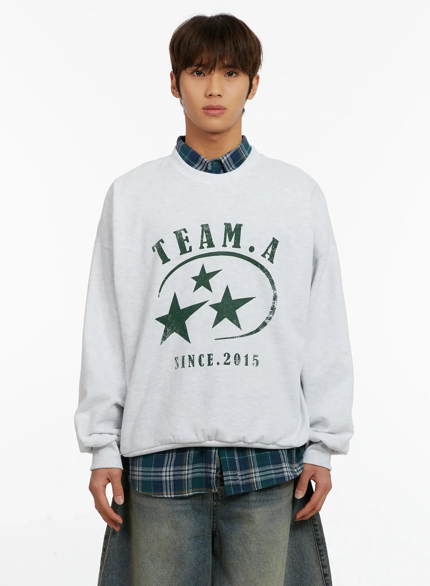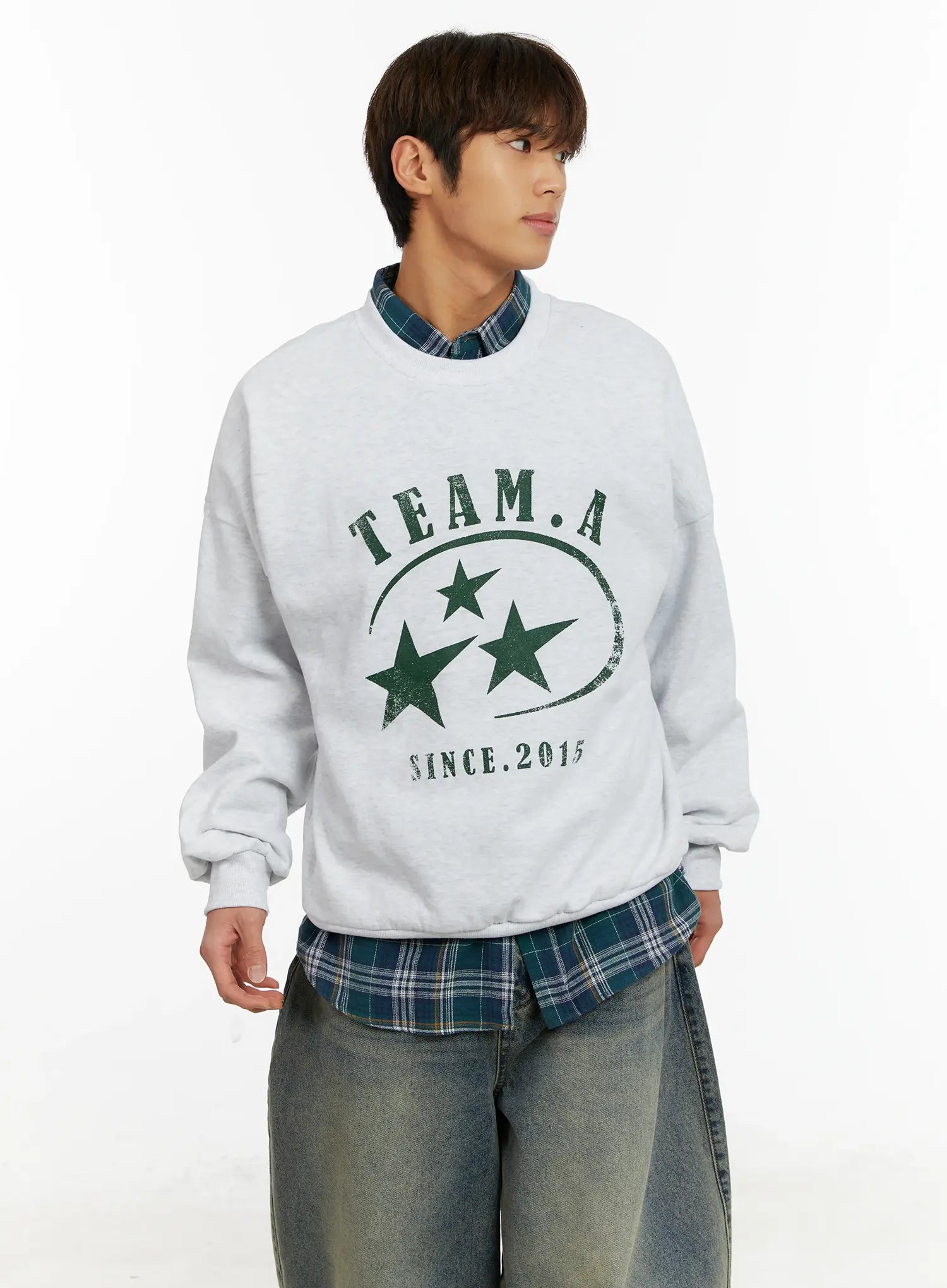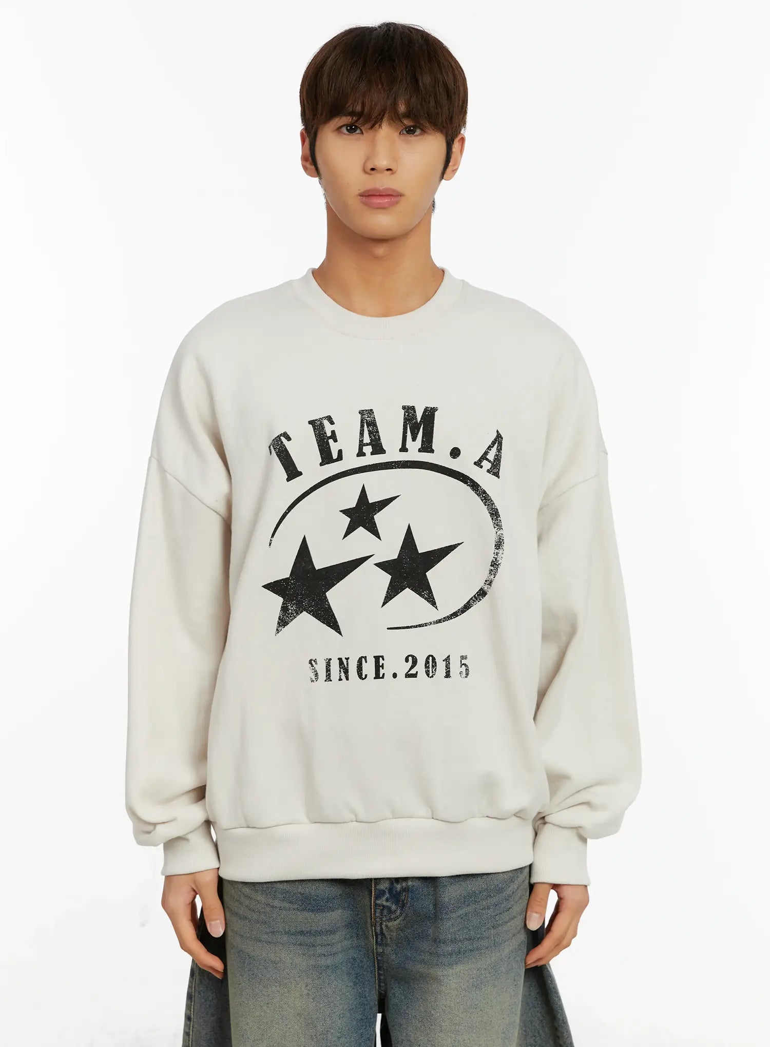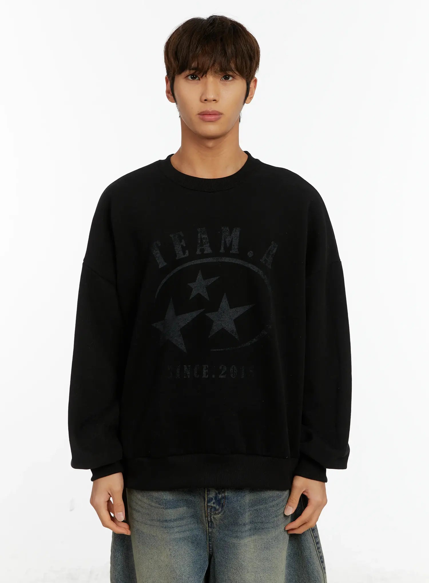 Men's Star Print Crewneck Fleece Sweatshirt ID524