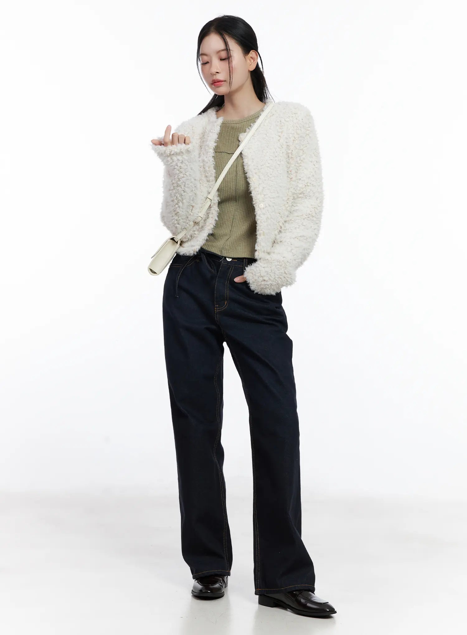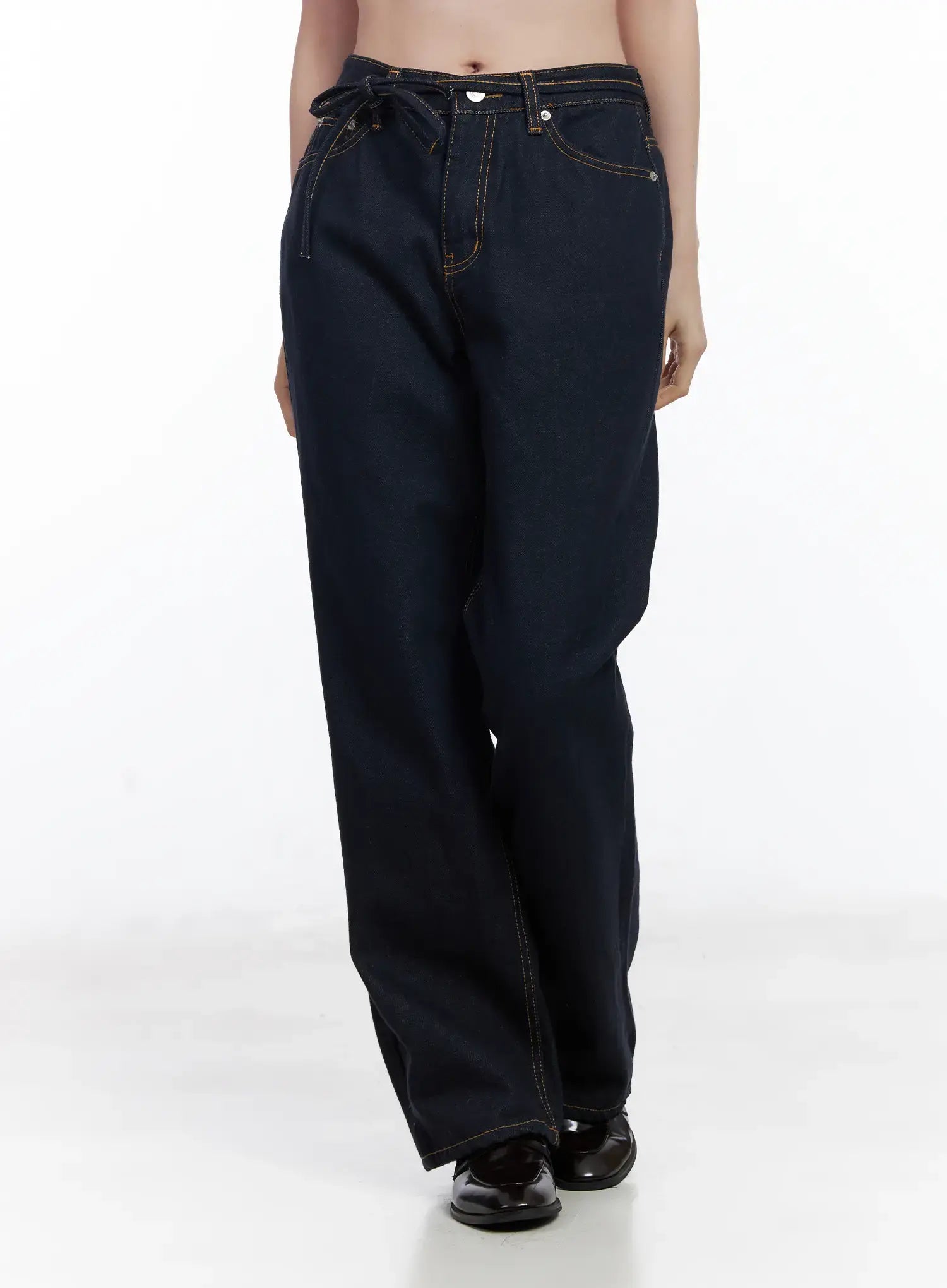 Mingi Non-Fade Semi-Wide Belted Jeans CJ519
