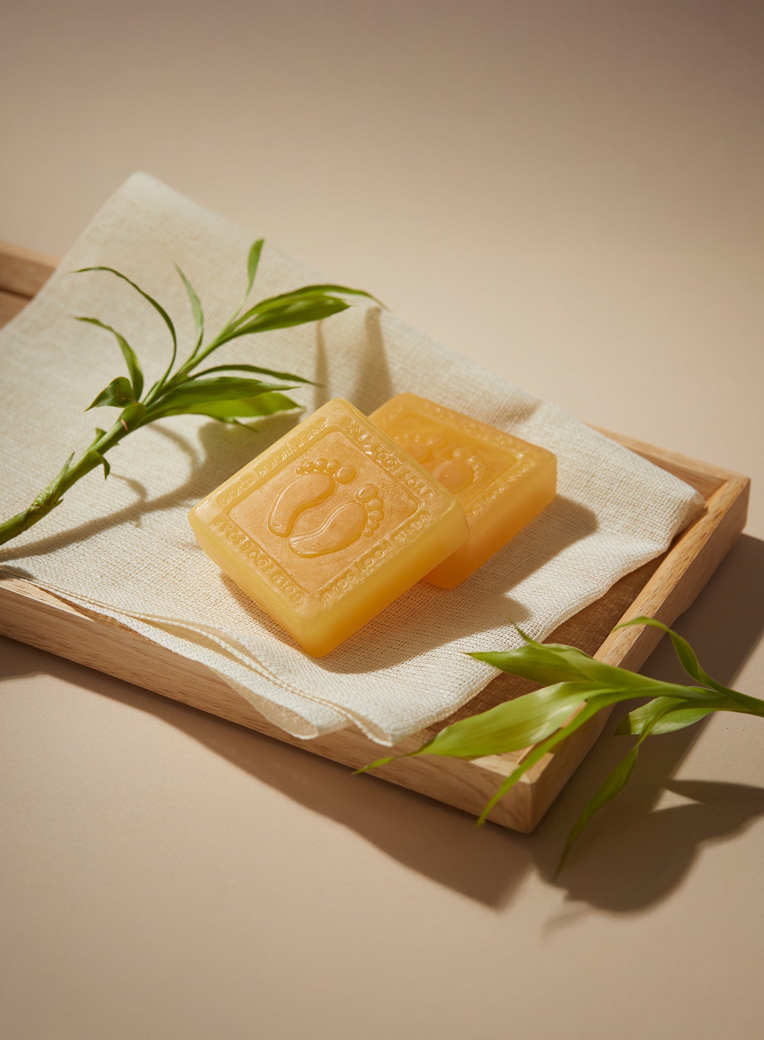 Exfoliating gold foot soap purifies and refreshes tired feet.