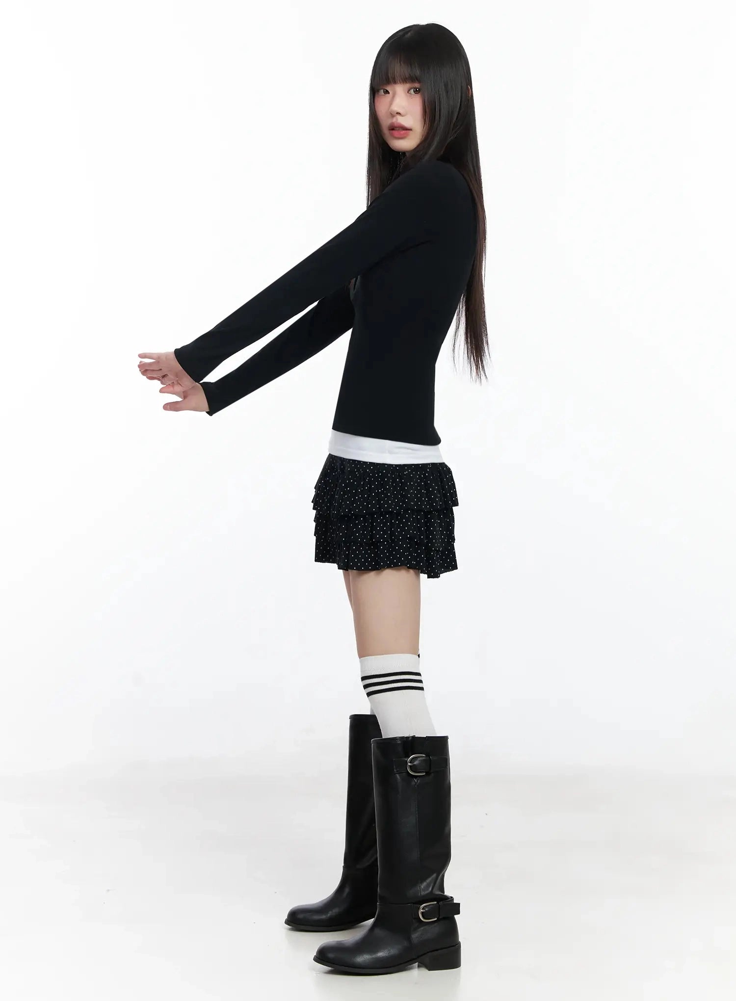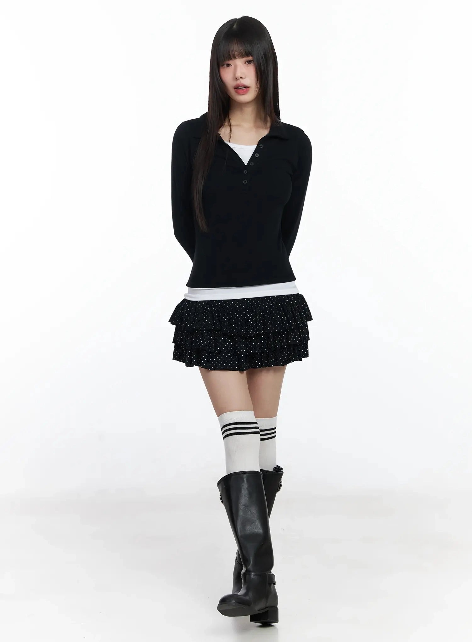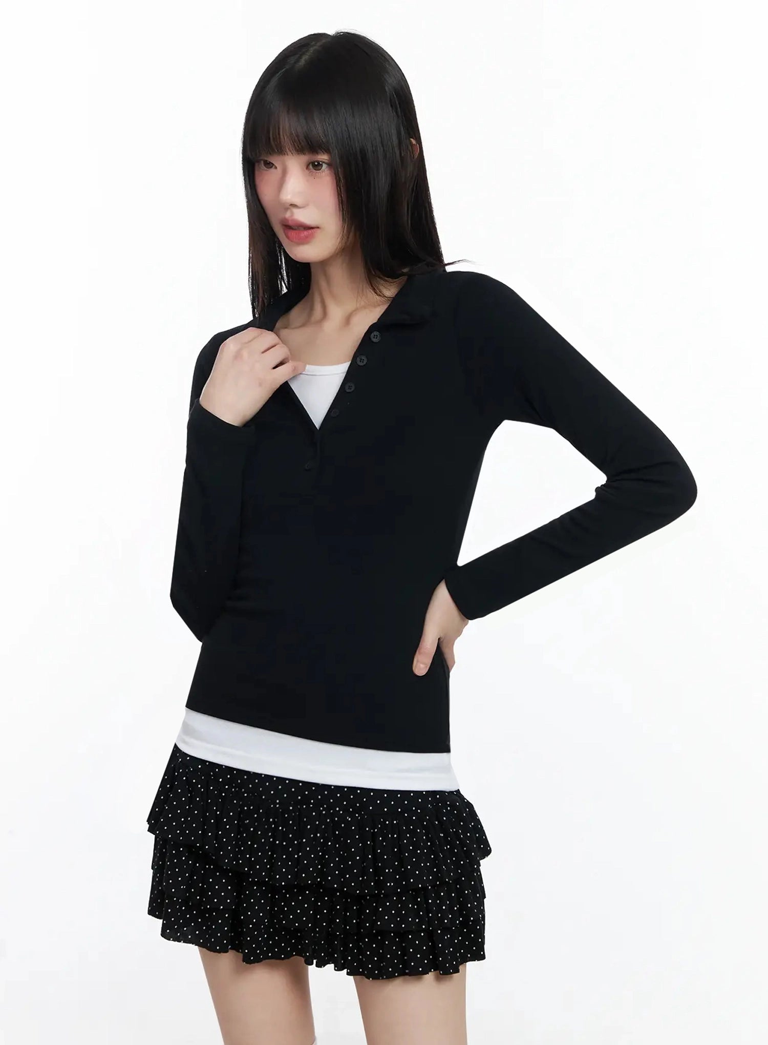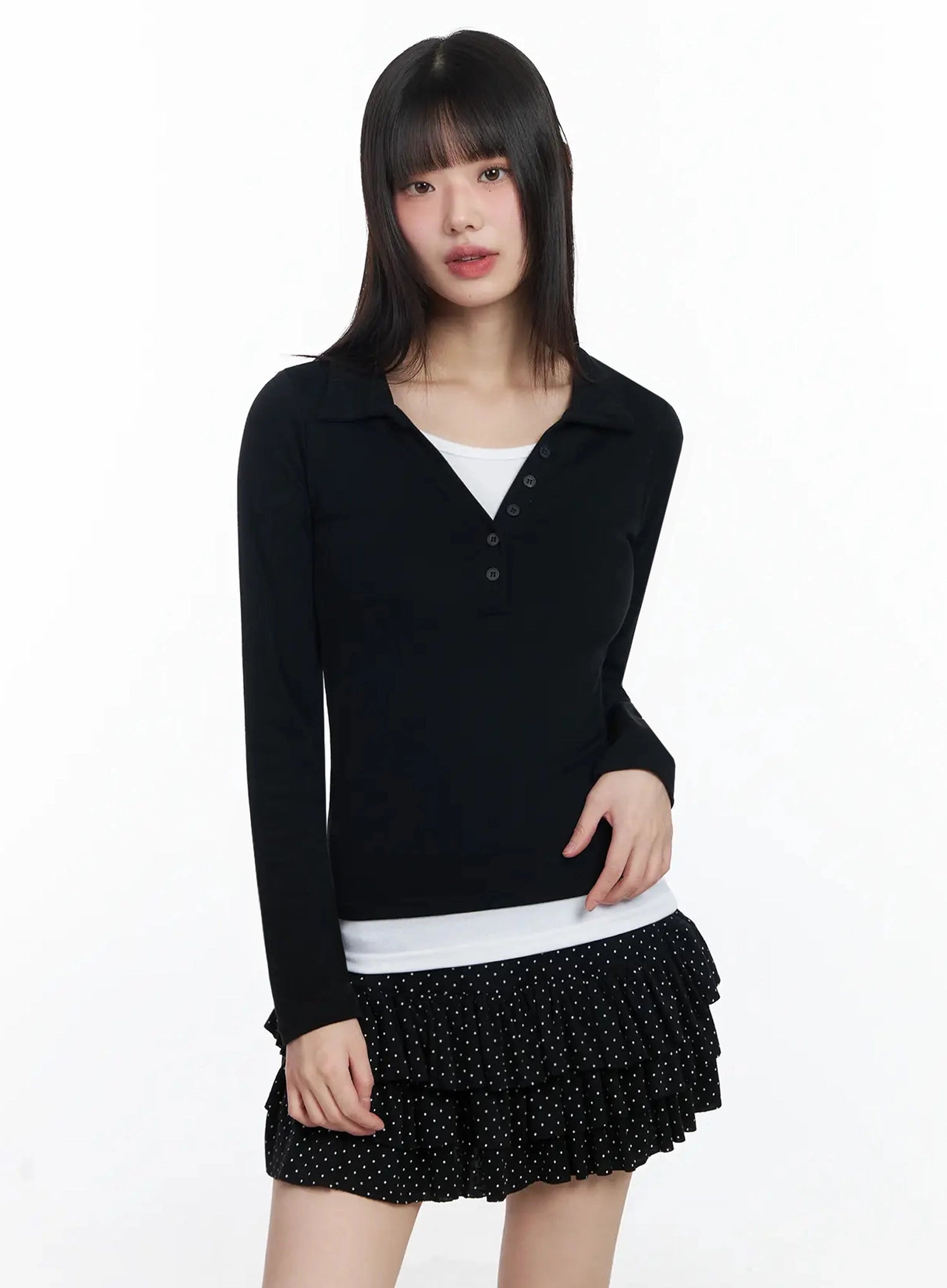 Layered Collar Long Sleeve Top IF505