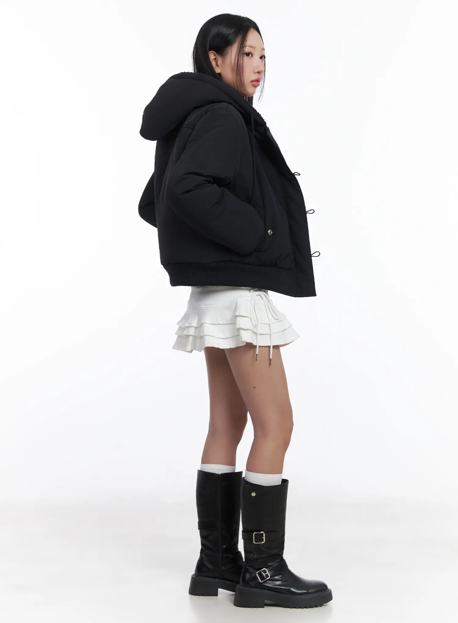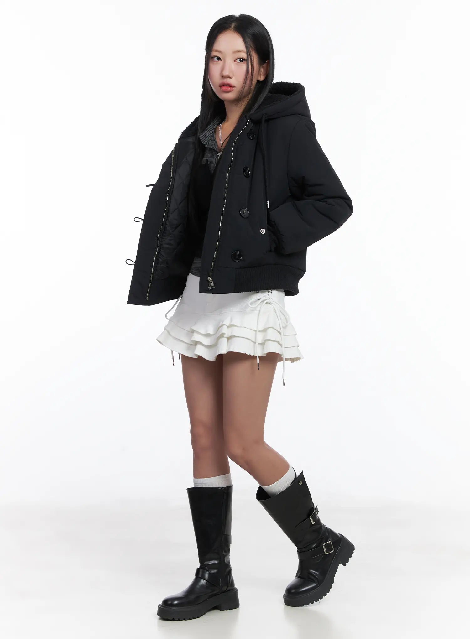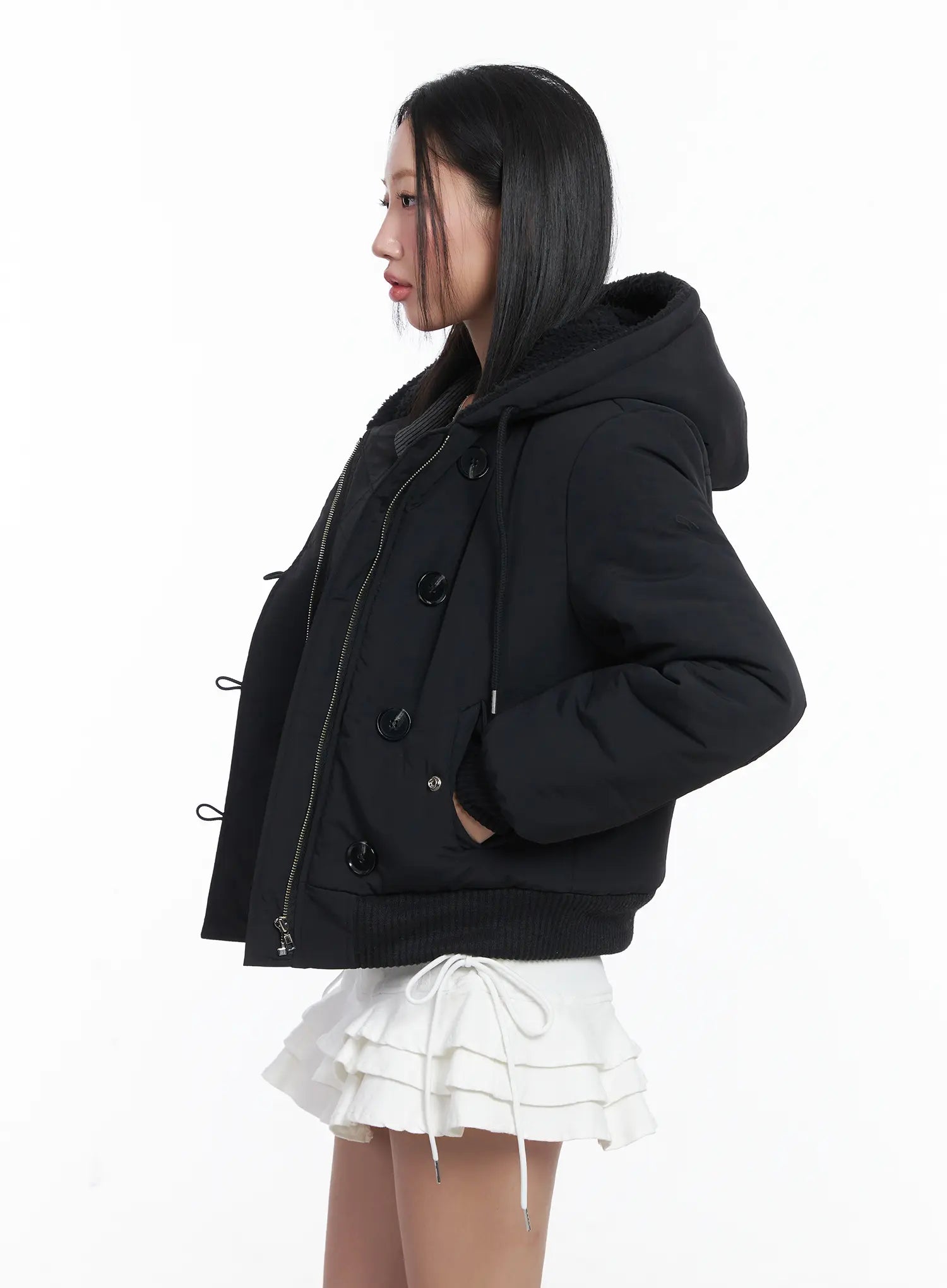 Button Faux Fur Crop Puffer Jacket CD529