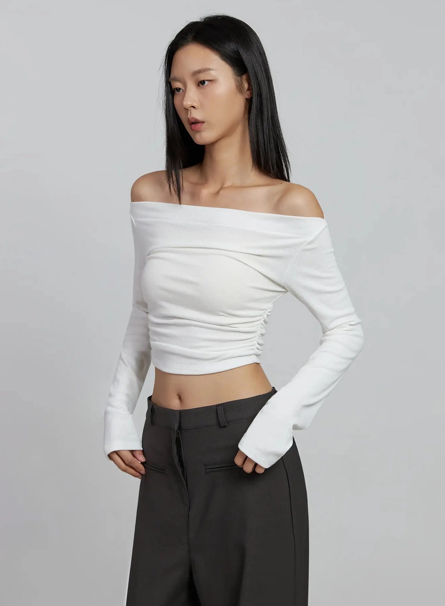 Ruched Off-Shoulder Crop Top IM520