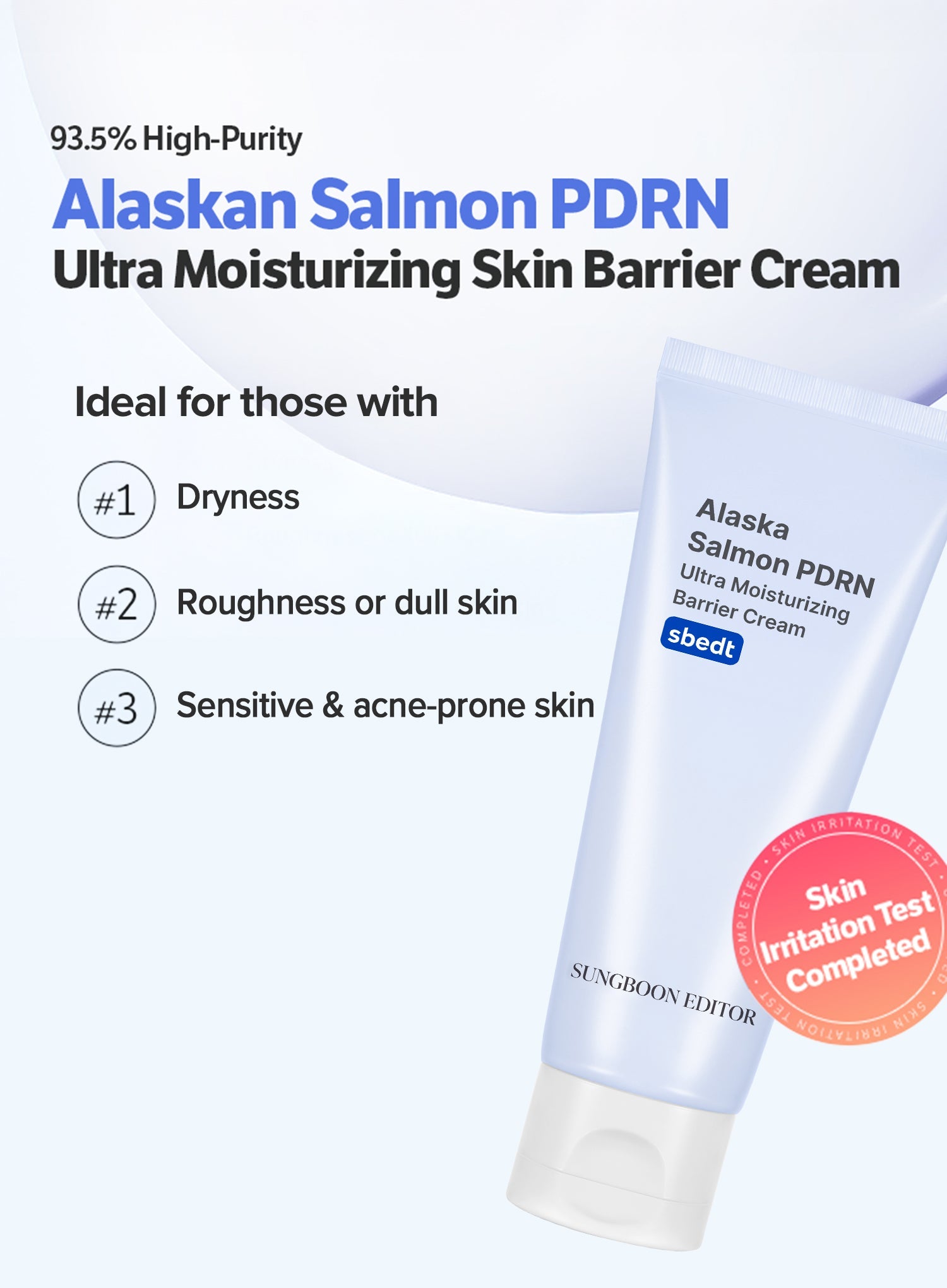 Formulated with 93.5 % Salmon PDRN to strengthen barrier, elasticity & moisture