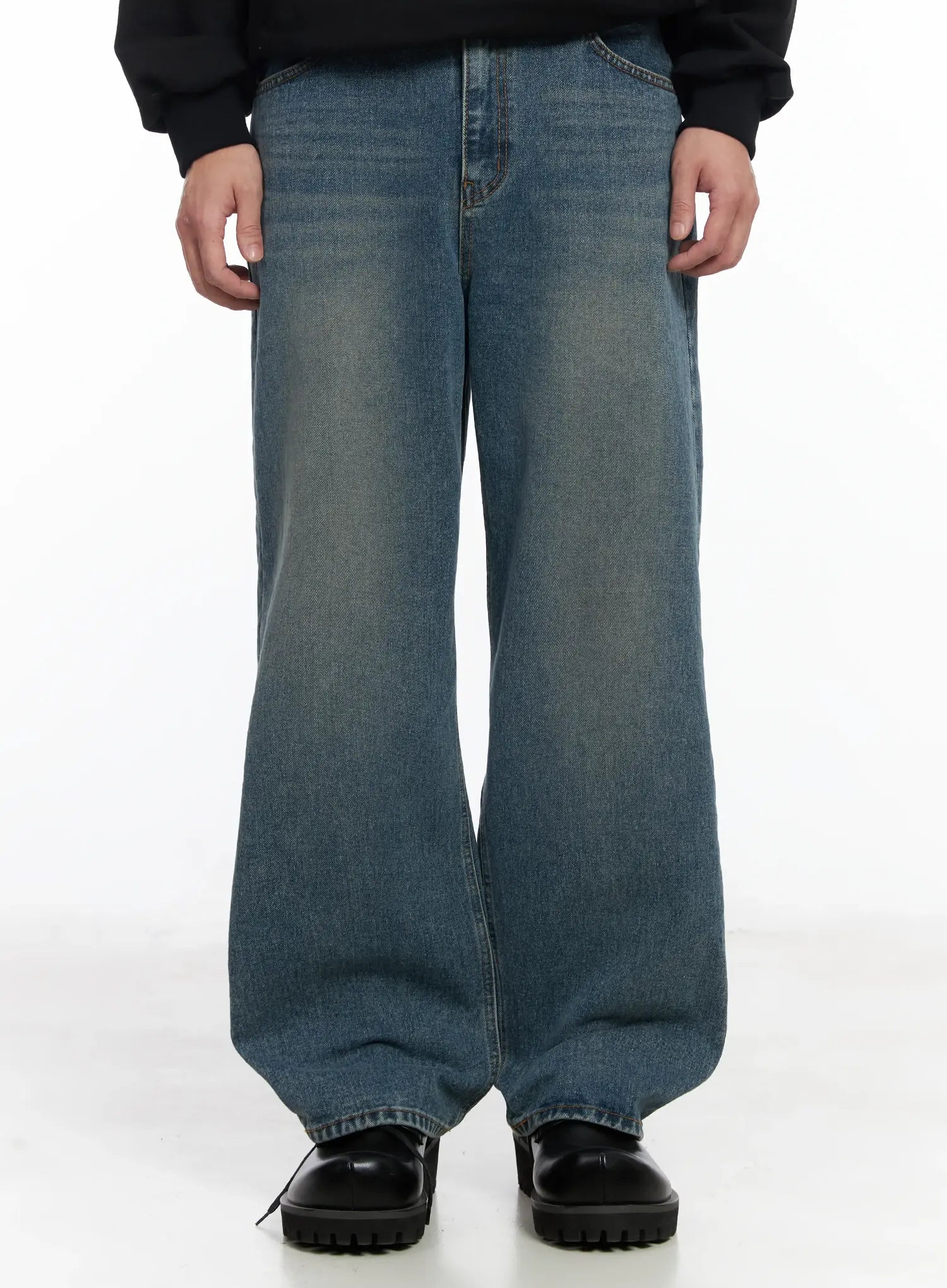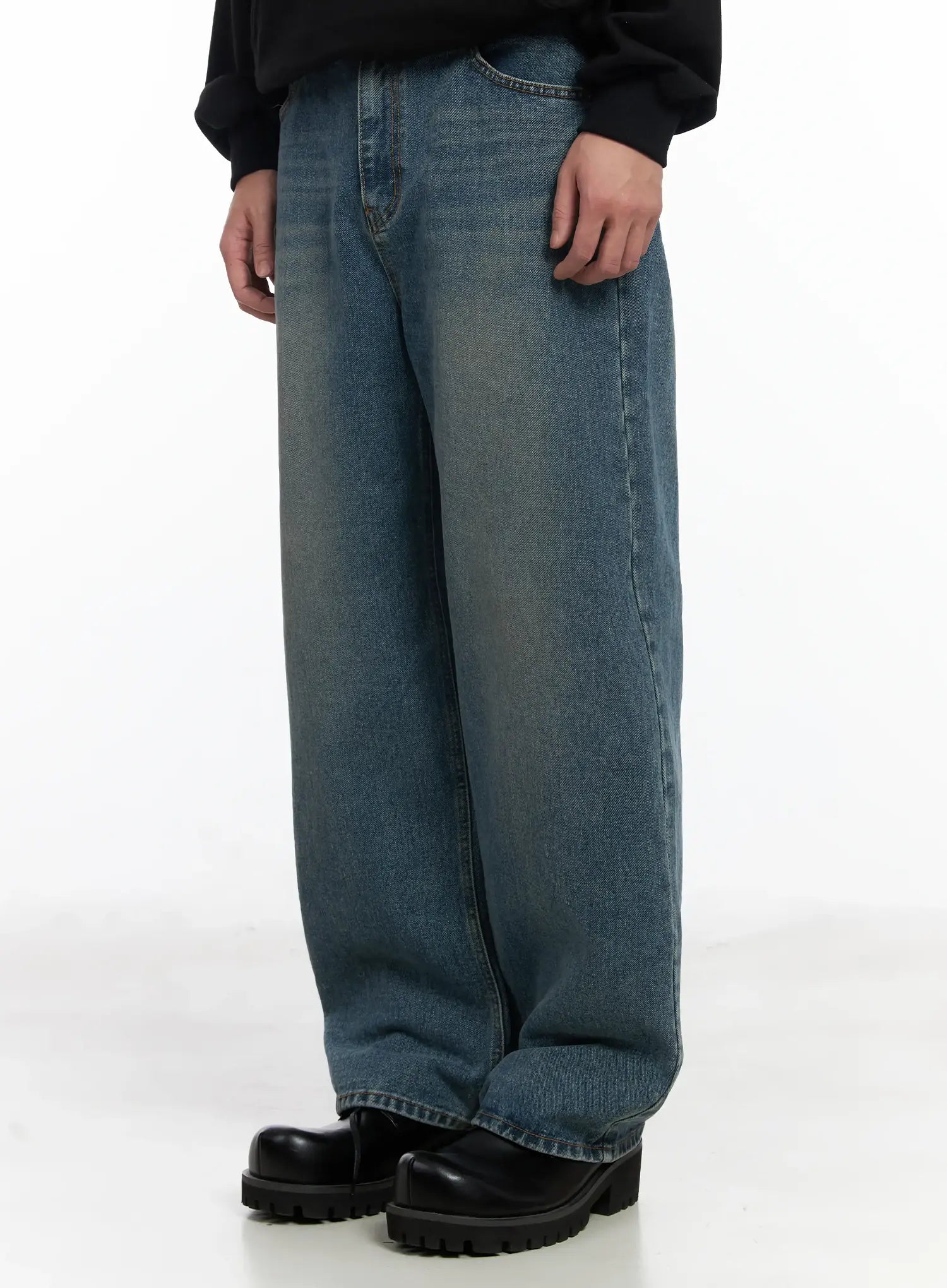 Men's Washed Wide Leg Jeans IF516