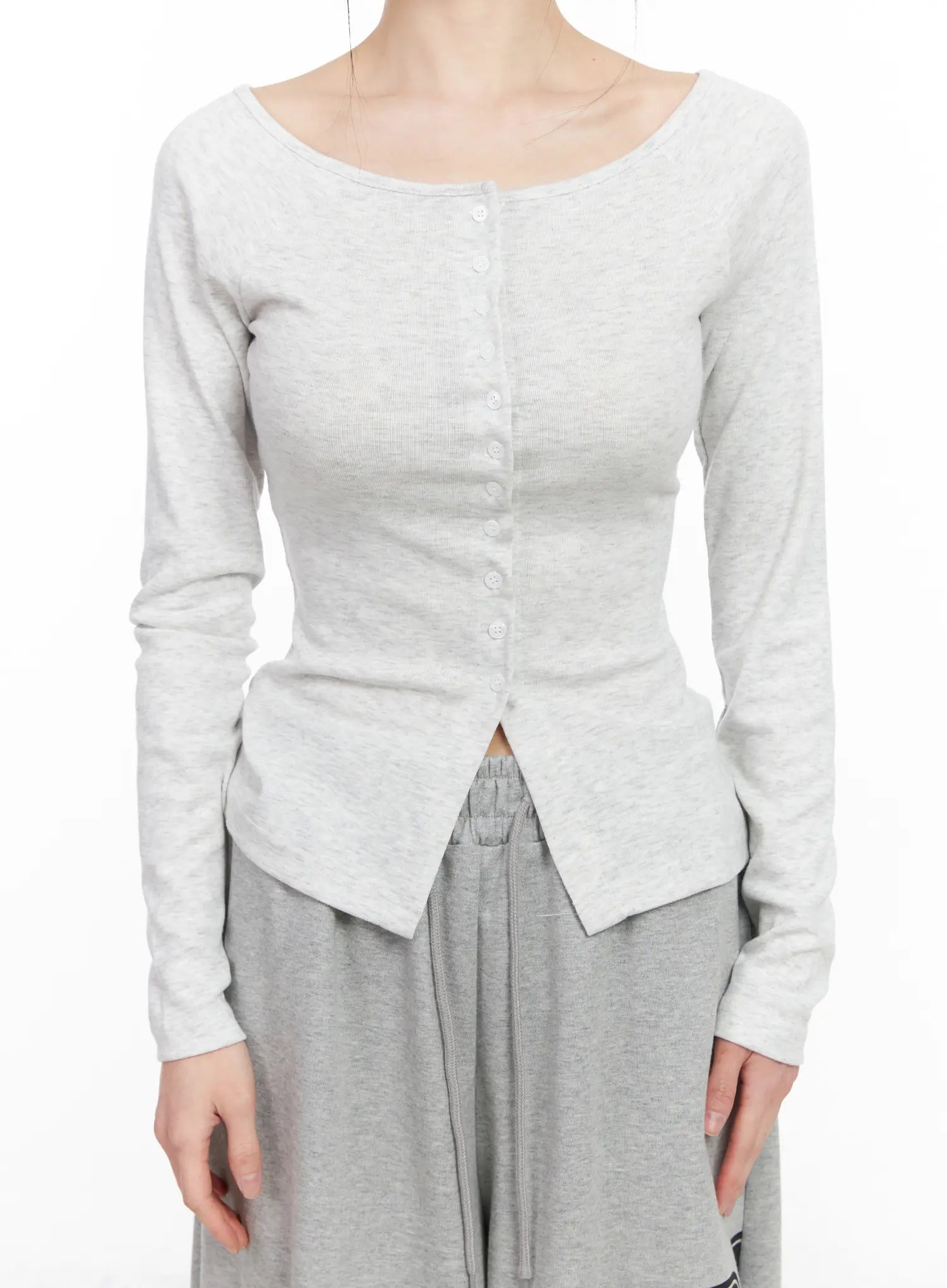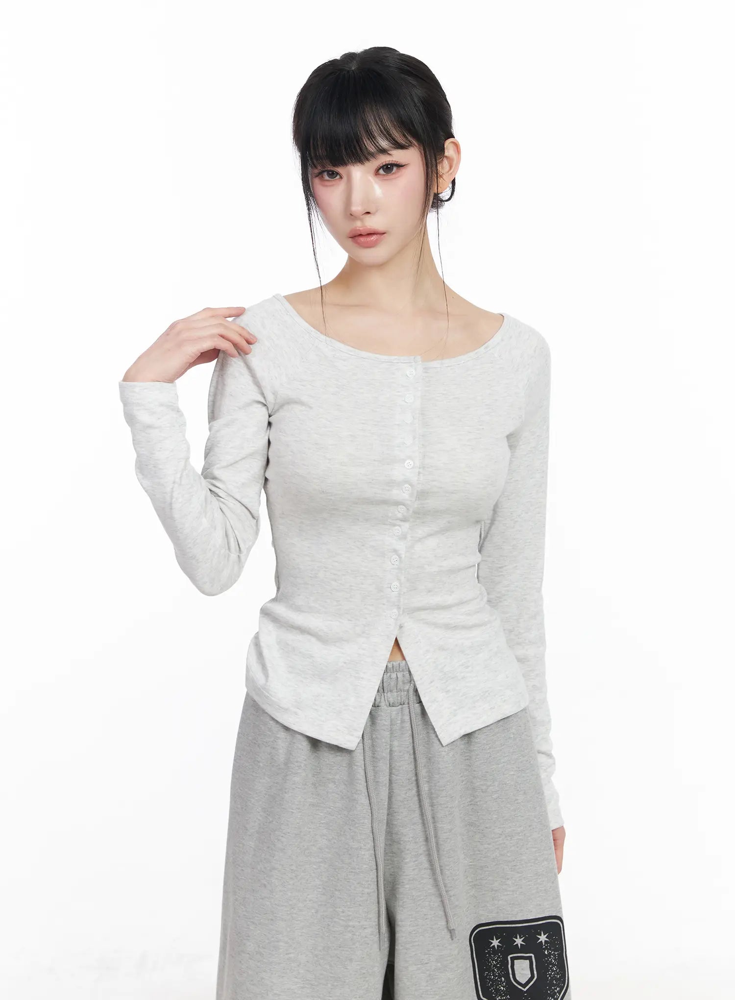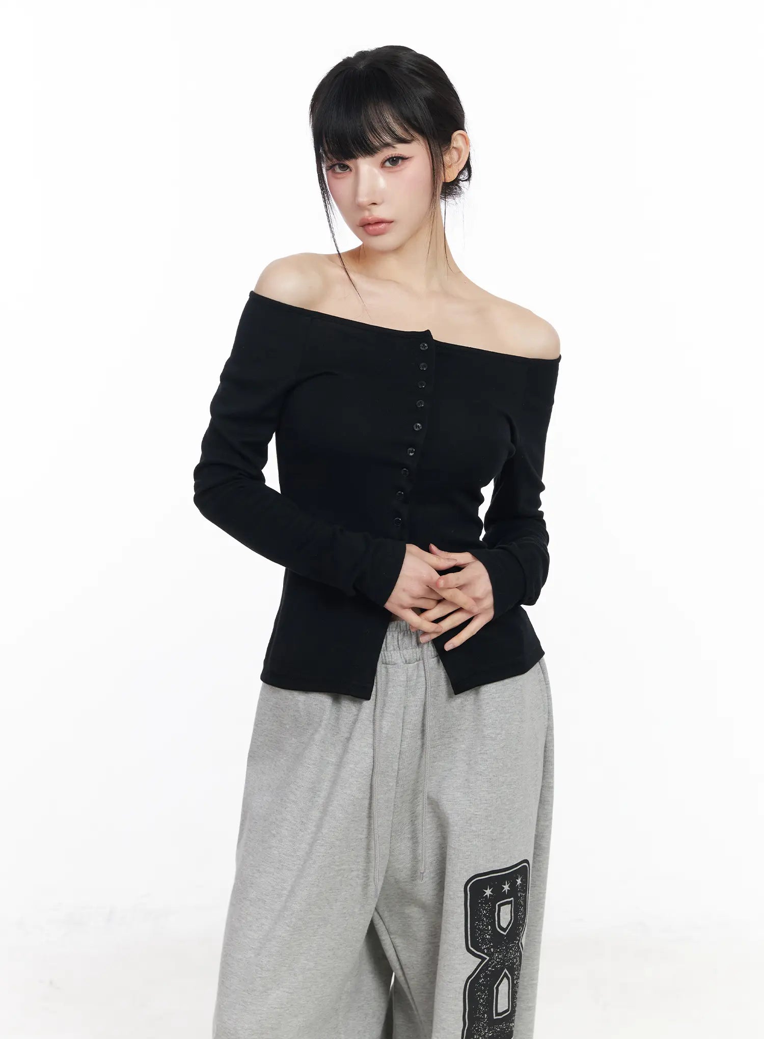 Off-Shoulder Button-Up Long Sleeve Top CF518