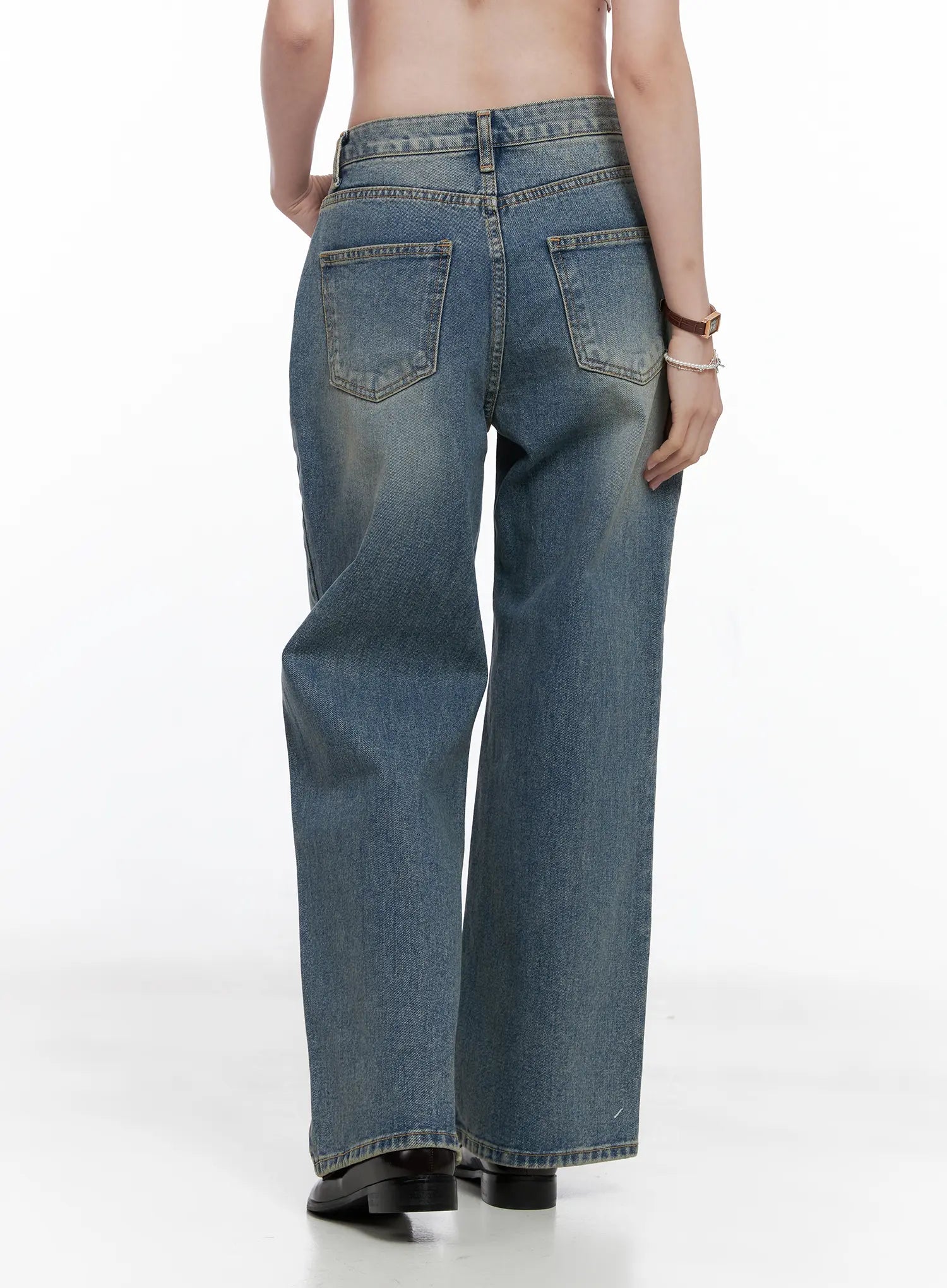 Qu Wide-Leg Vintage Wash Jeans CG521