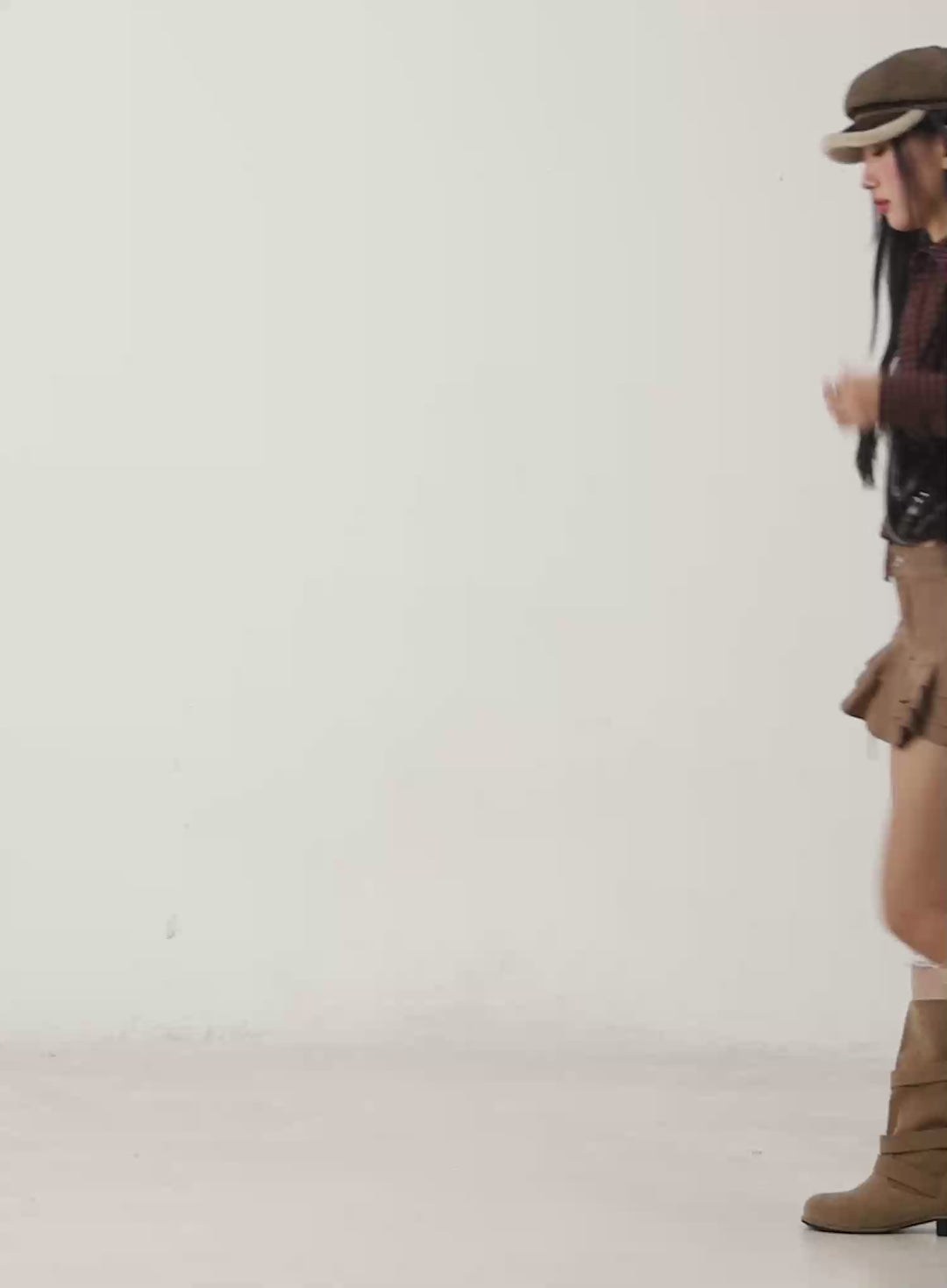 fleece-lined-pleated-mini-skirt-cd523 / Dark brown