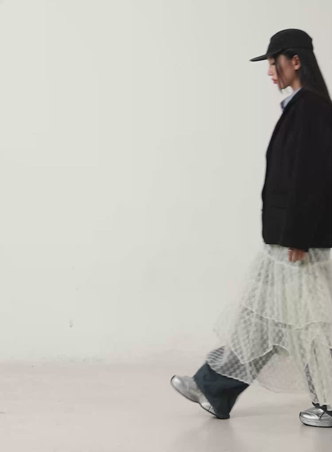 pom-pom-tiered-mini-skirt-cd526 / Black