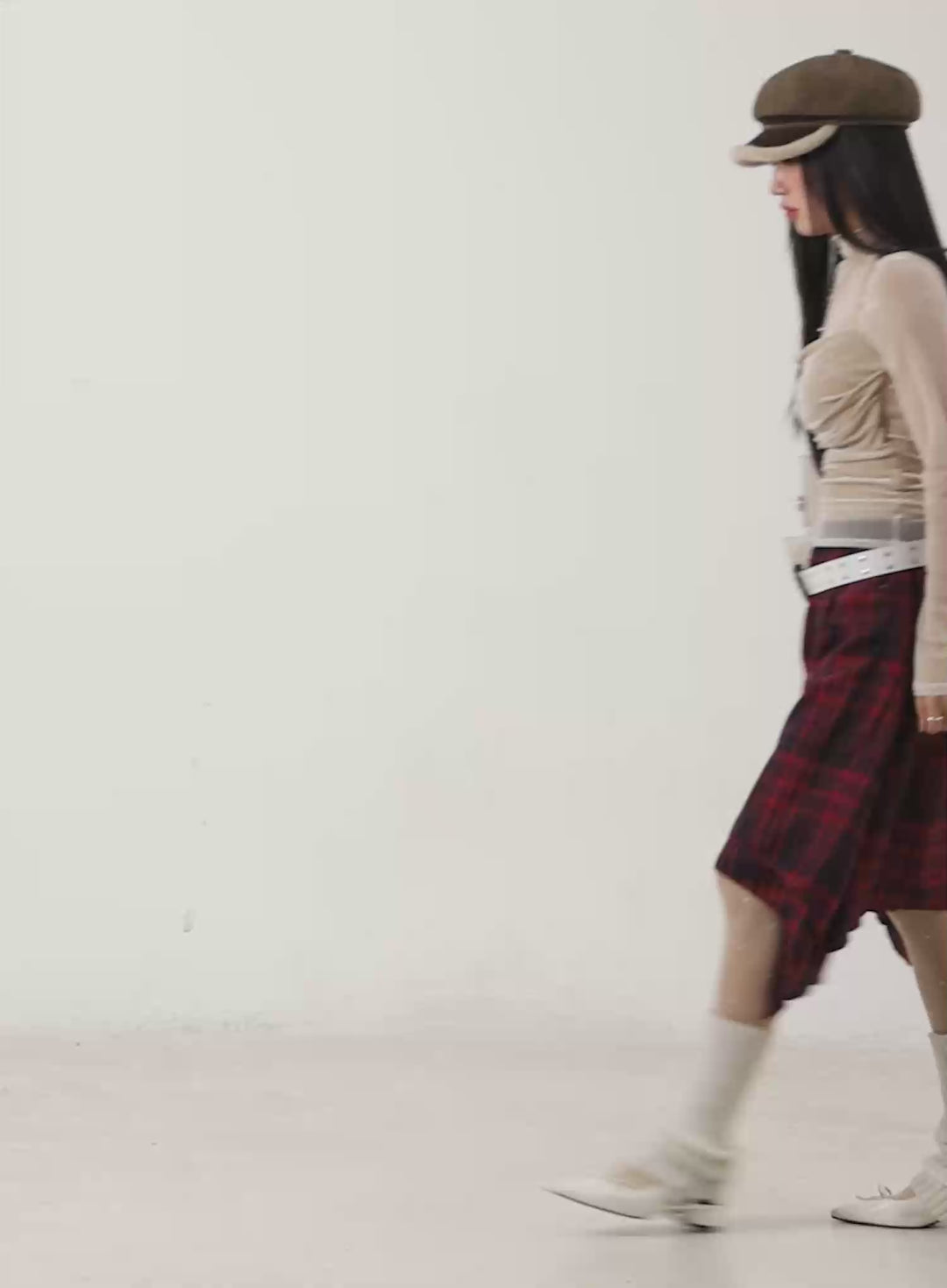 asymmetric-checkered-midi-skirt-cd530 / Dark red