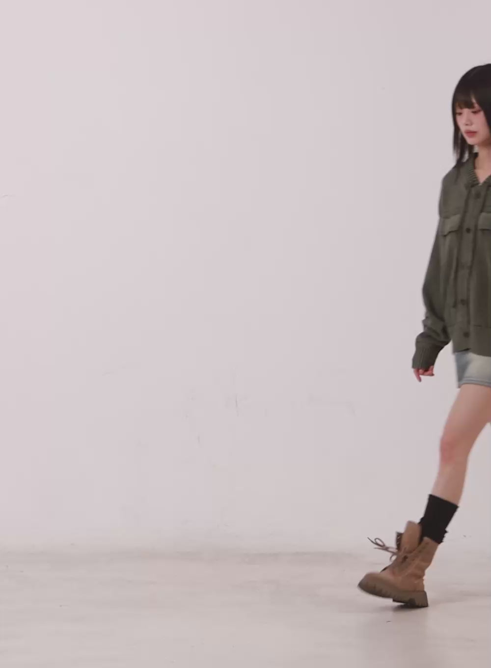 A cropped black bomber jacket, faux leather shorts, and sleek ankle boots combine to form a powerful statement look. Paired with ski poles and a bold attitude, this outfit brings a cyberpunk-inspired twist to traditional winterwear. Designed for those who embrace individuality, it’s the perfect choice for making a locked eyes on the slopes or beyond.