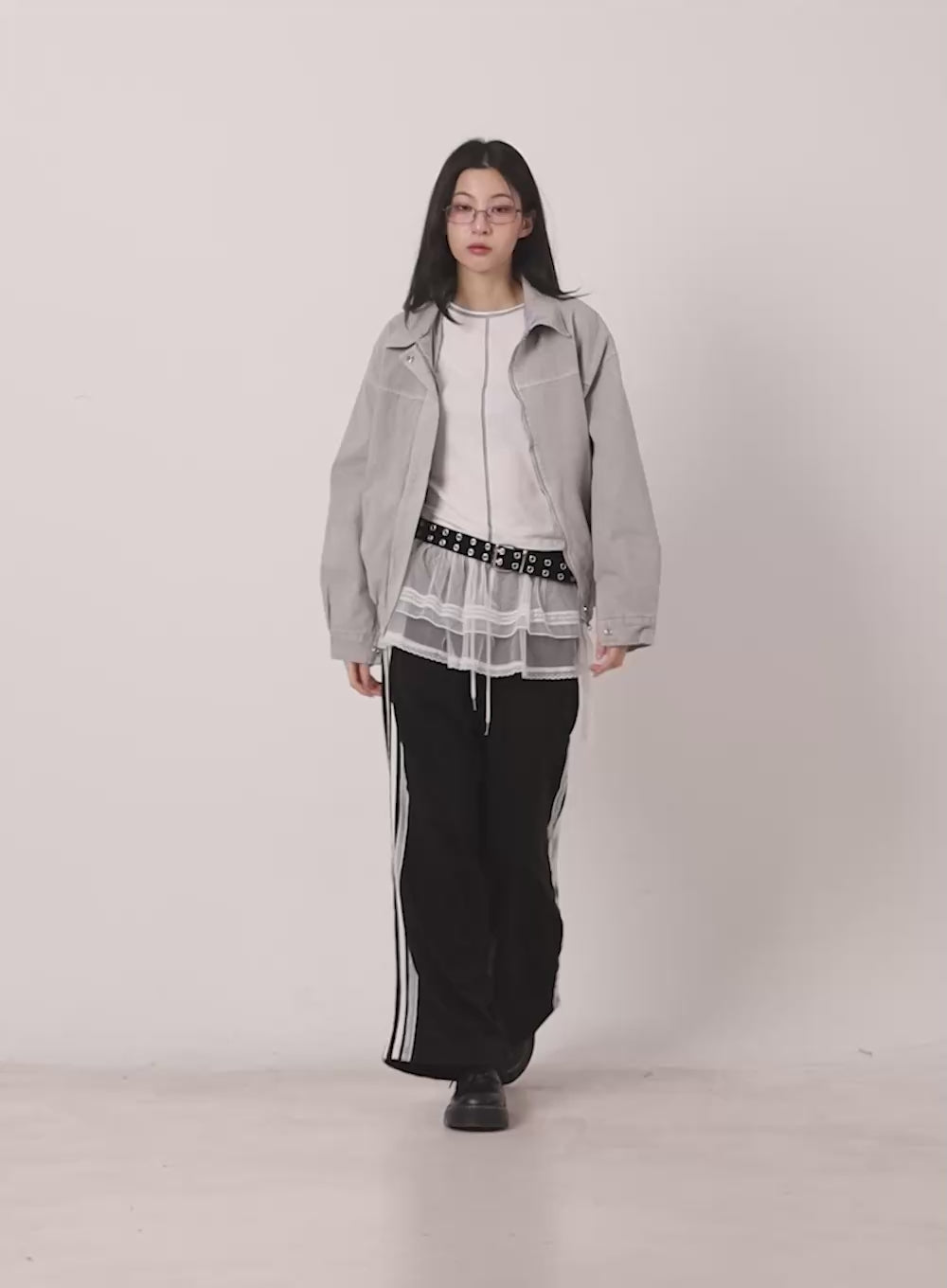 lace-trim-striped-sweatpants-cm504 / Light beige