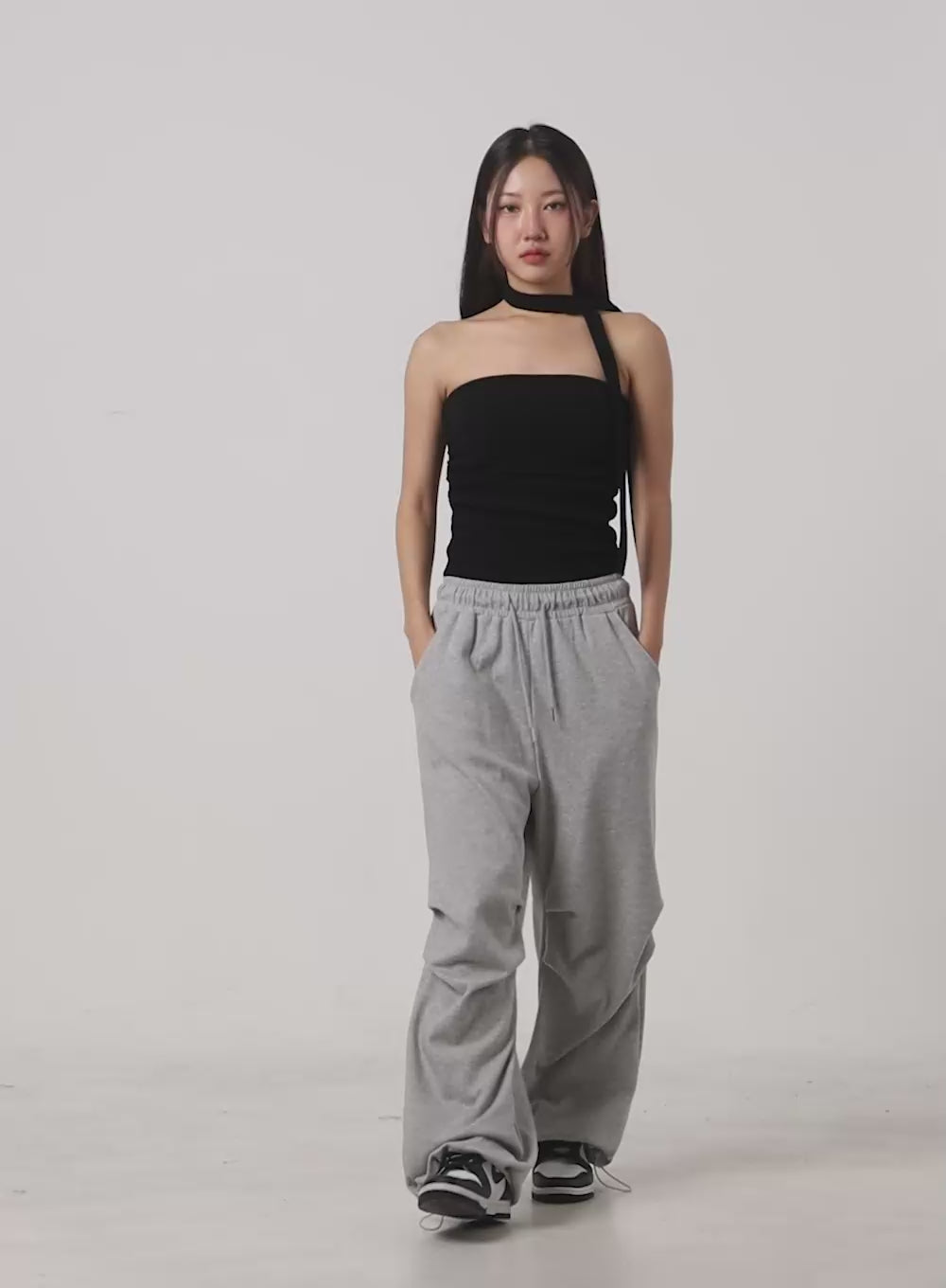 pintuck-string-wide-sweatpants-co404 / Dark gray