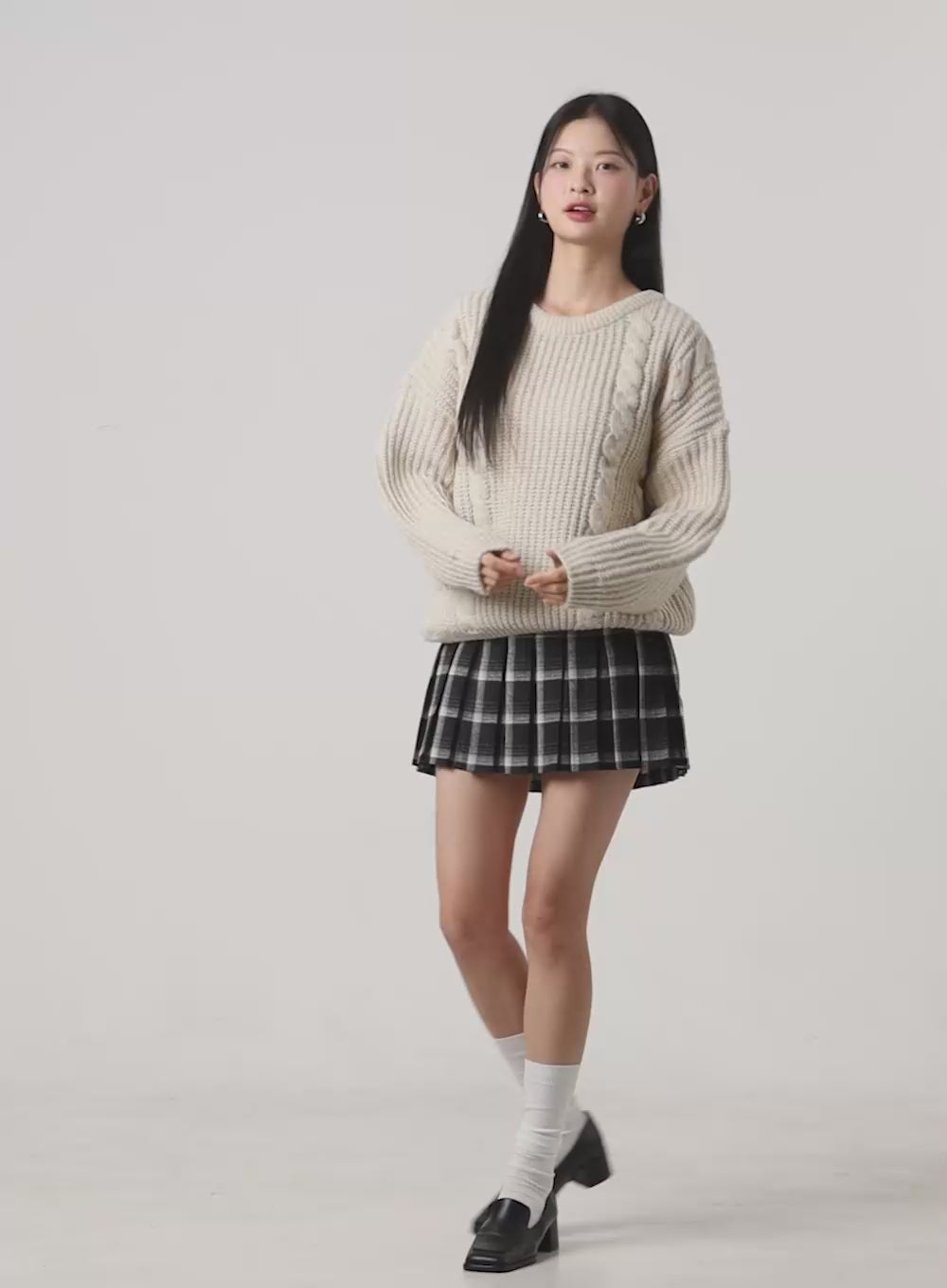 oversized-cable-knit-zip-up-sweater-os410 / Light beige