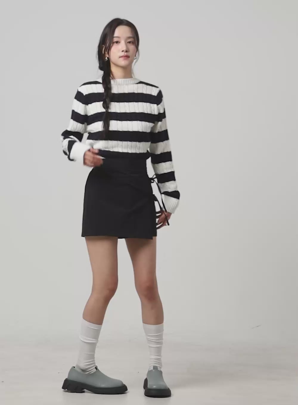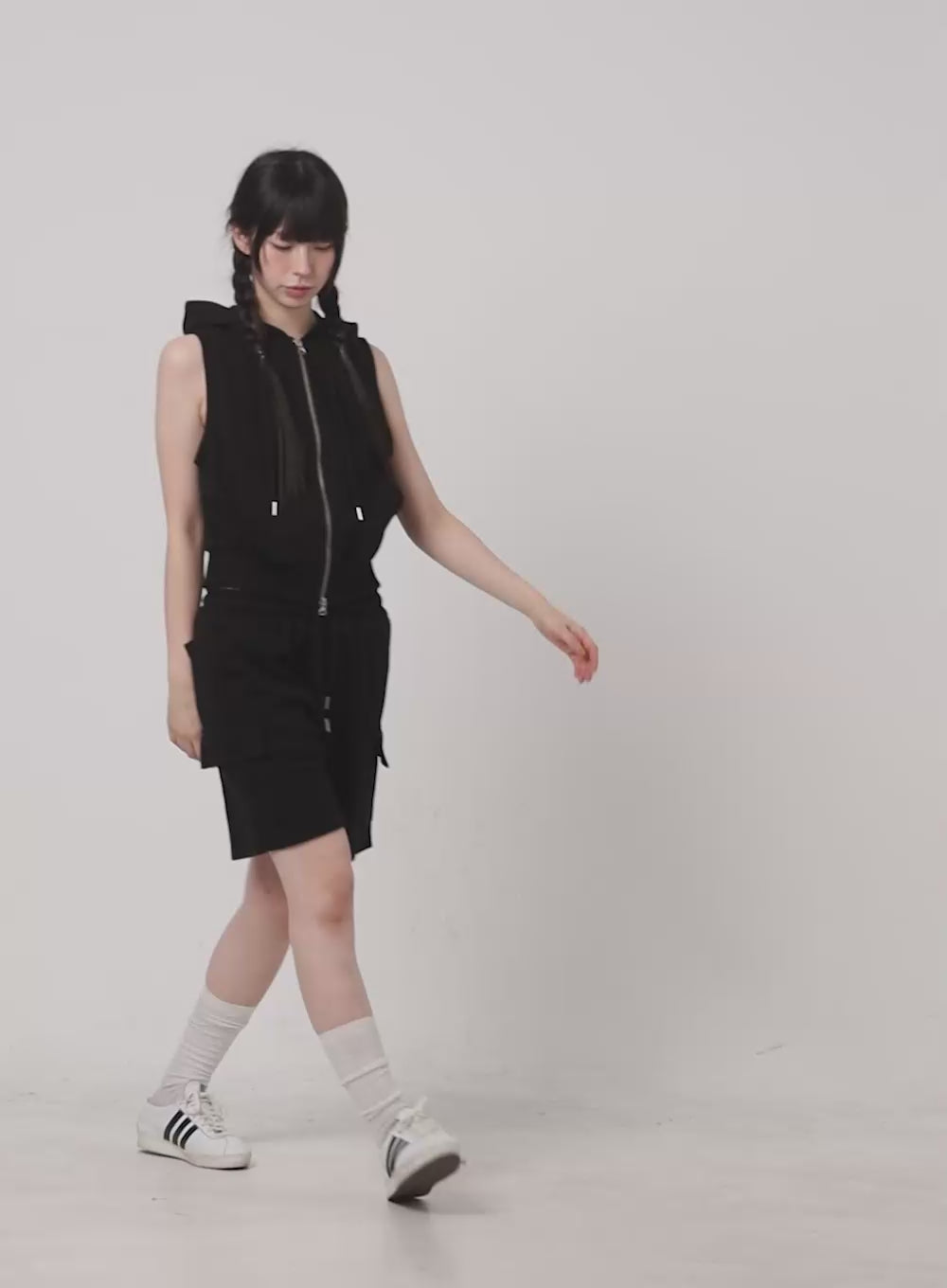 A cropped black bomber jacket, faux leather shorts, and sleek ankle boots combine to form a powerful statement look. Paired with ski poles and a bold attitude, this outfit brings a cyberpunk-inspired twist to traditional winterwear. Designed for those who embrace individuality, it’s the perfect choice for making a locked eyes on the slopes or beyond.