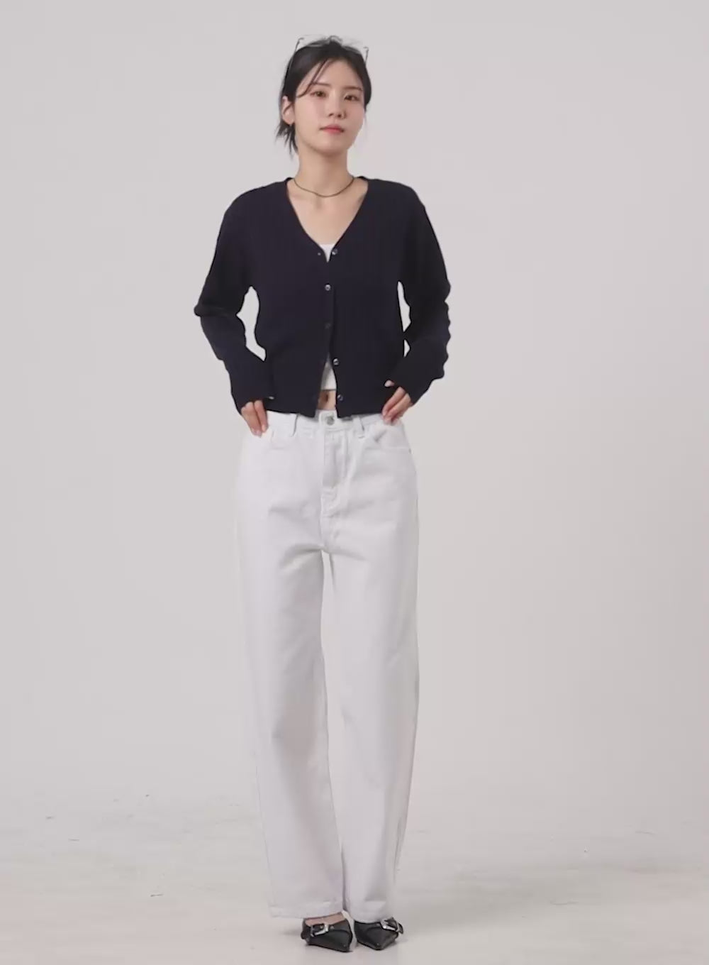 v-neck-buttoned-crop-cardigan-oa405 / Black