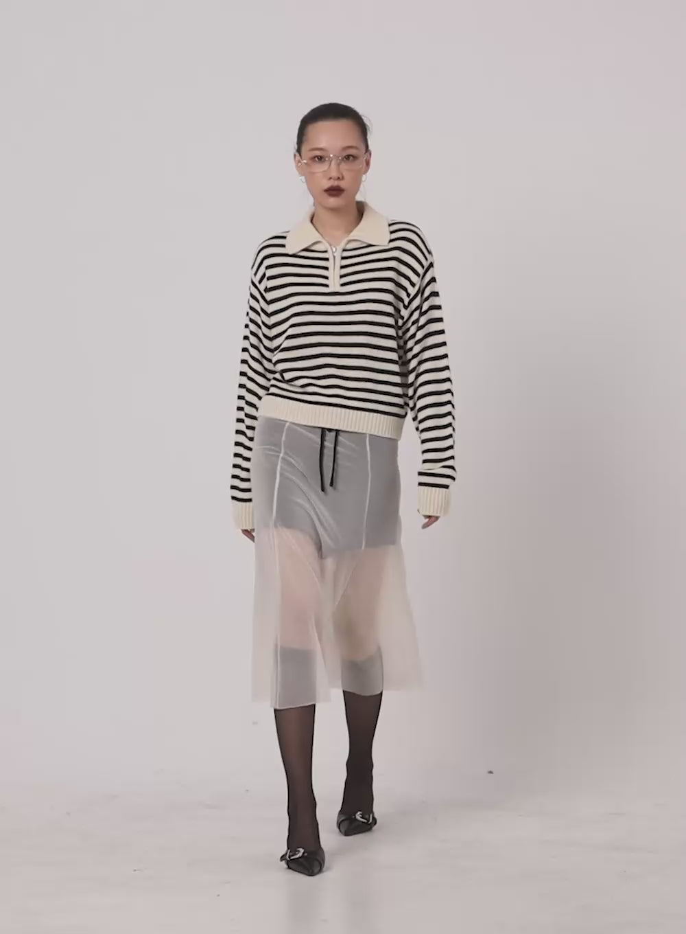 collared-zip-up-neck-pullover-ia417 / Light beige