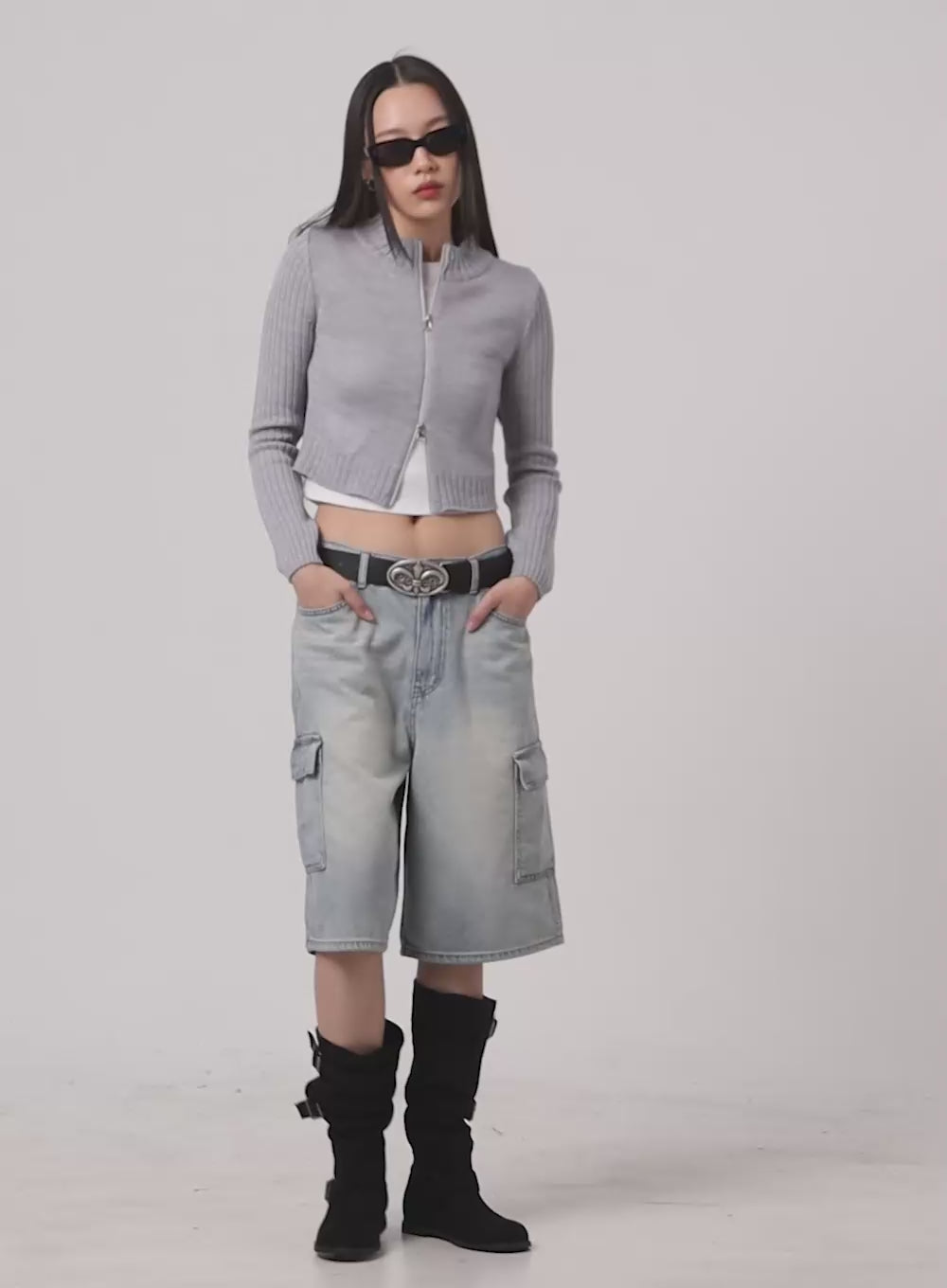 crop-zip-up-mock-neck-sweater-ia417 / Gray