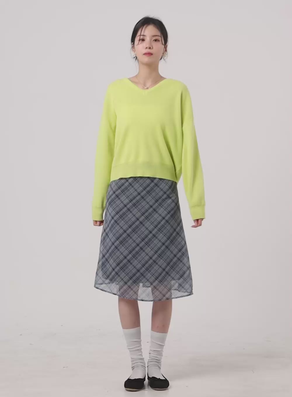 oversized-v-neck-waffle-knit-sweater-oa415 / Light beige