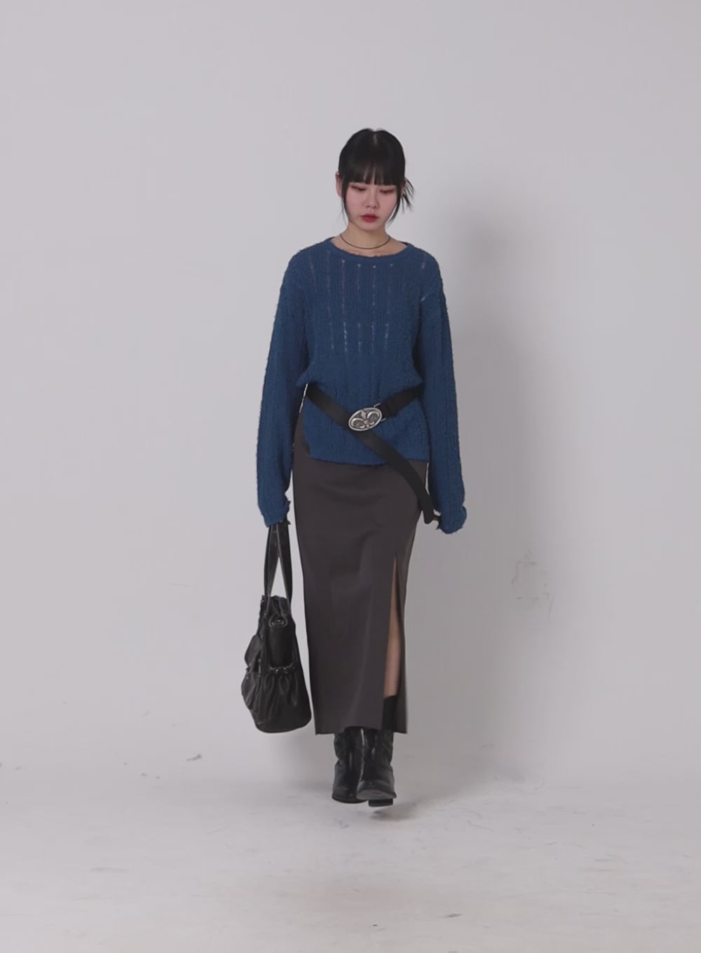 crew-neck-slit-knit-sweater-oj418 / Gray