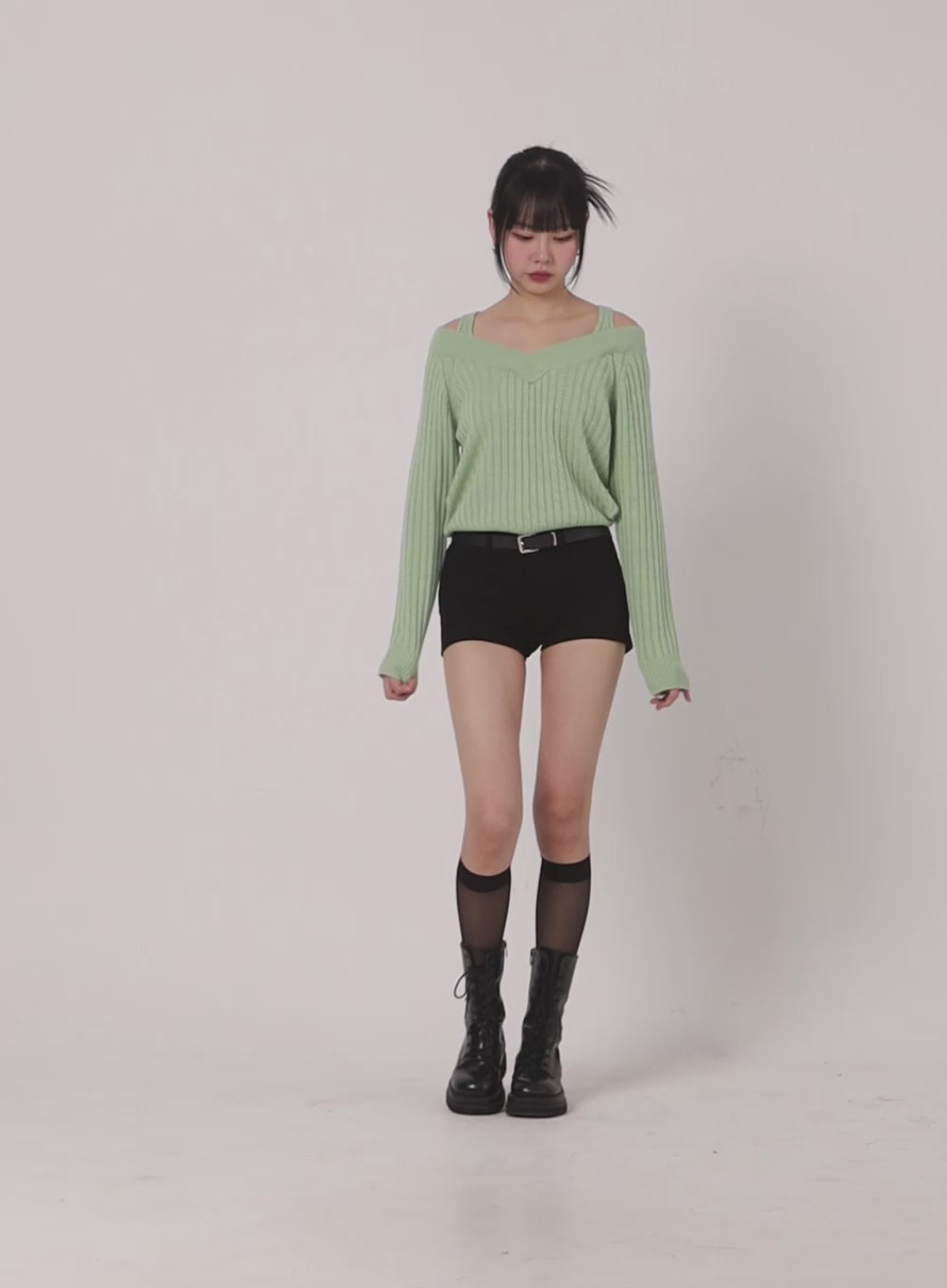 v-neck-knitted-long-sleeve-sweater-oj419 / Green