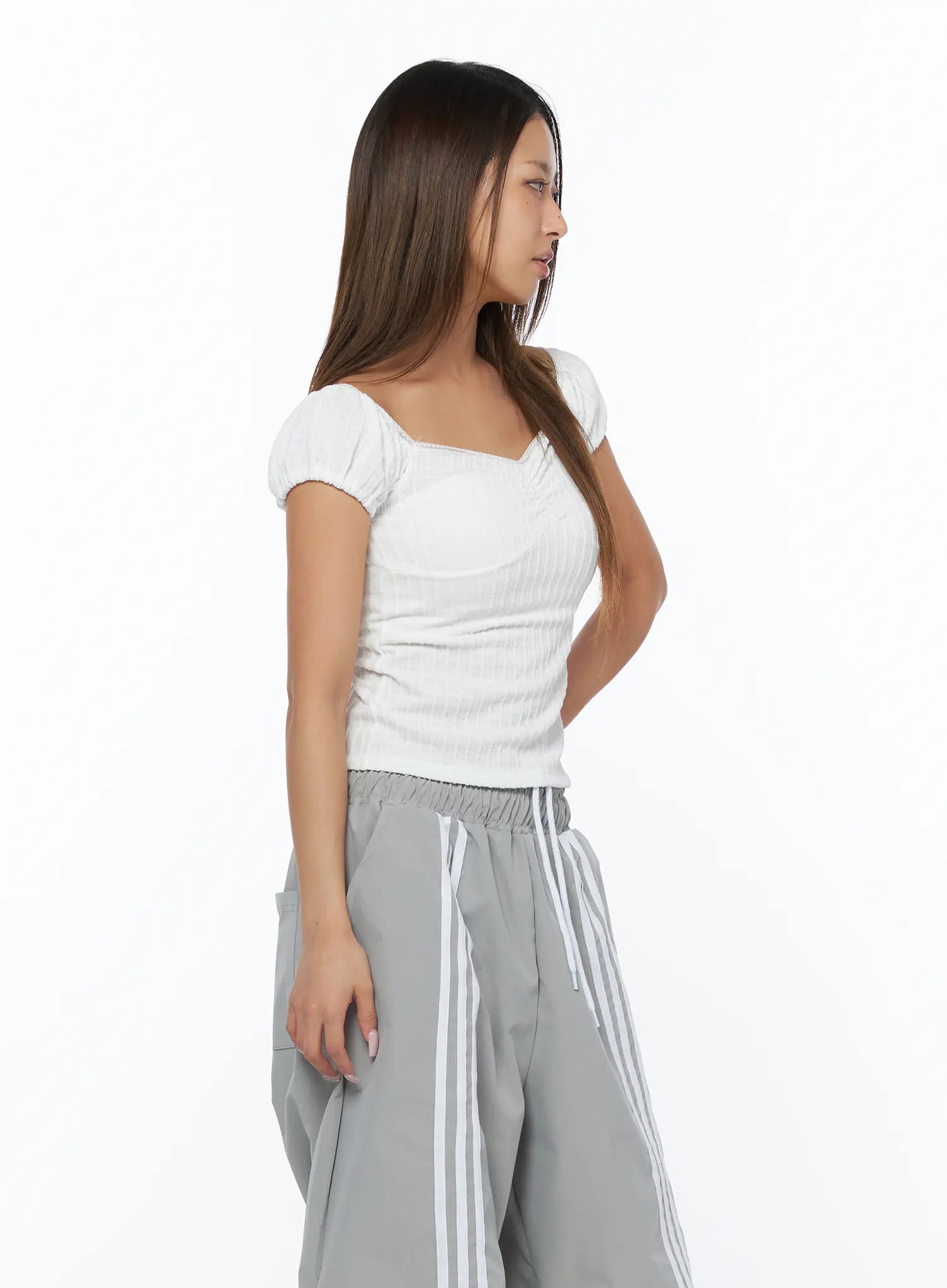 Ribbed Puff Sleeve Top CA516
