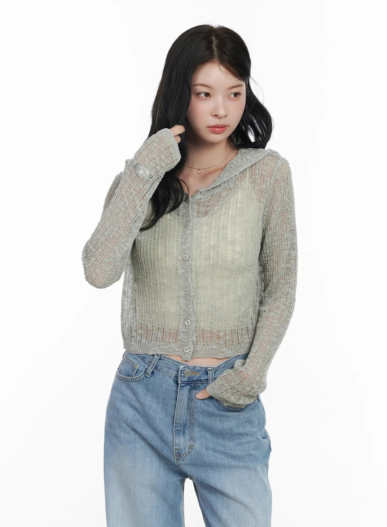 Sheer Crop Hoodie Knit Cardigan CA510