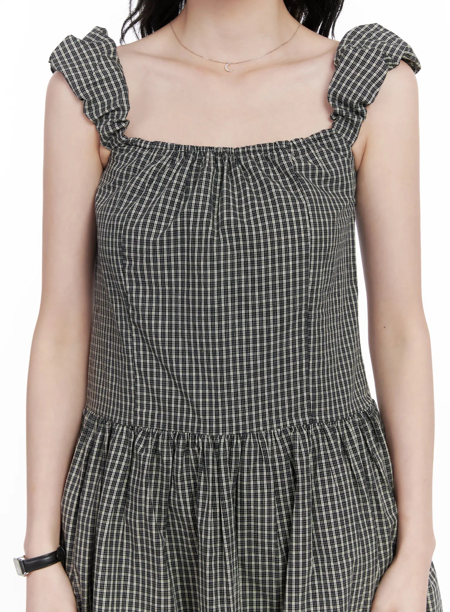 Model is wearing size S/M and the color Check.