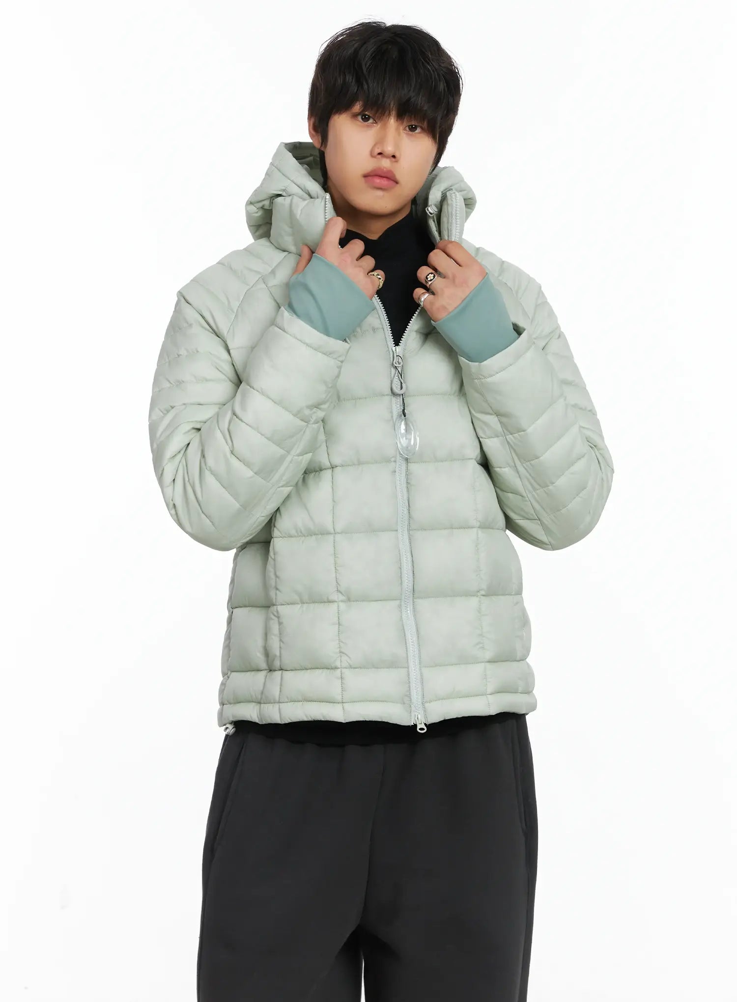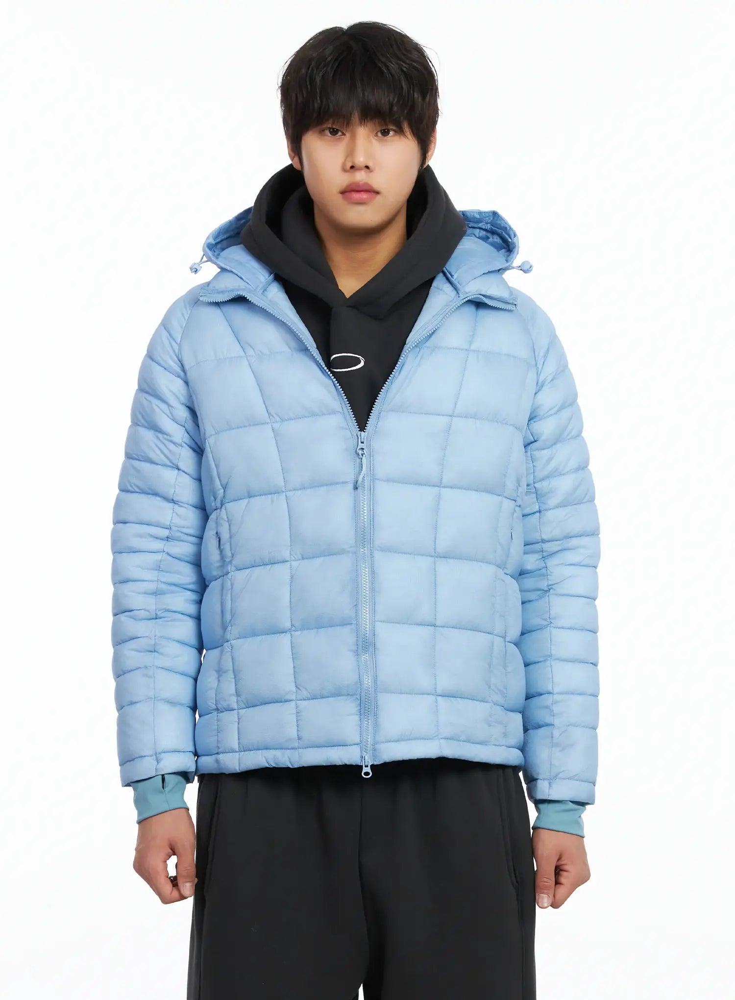 Men's Square Quilted Hooded Puffer Jacket IJ512