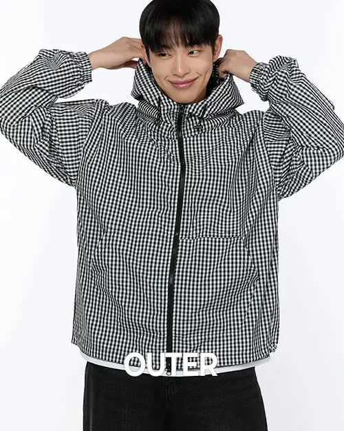 NEW EXTRA 10%Men's Checkered Hooded Jacket IA520