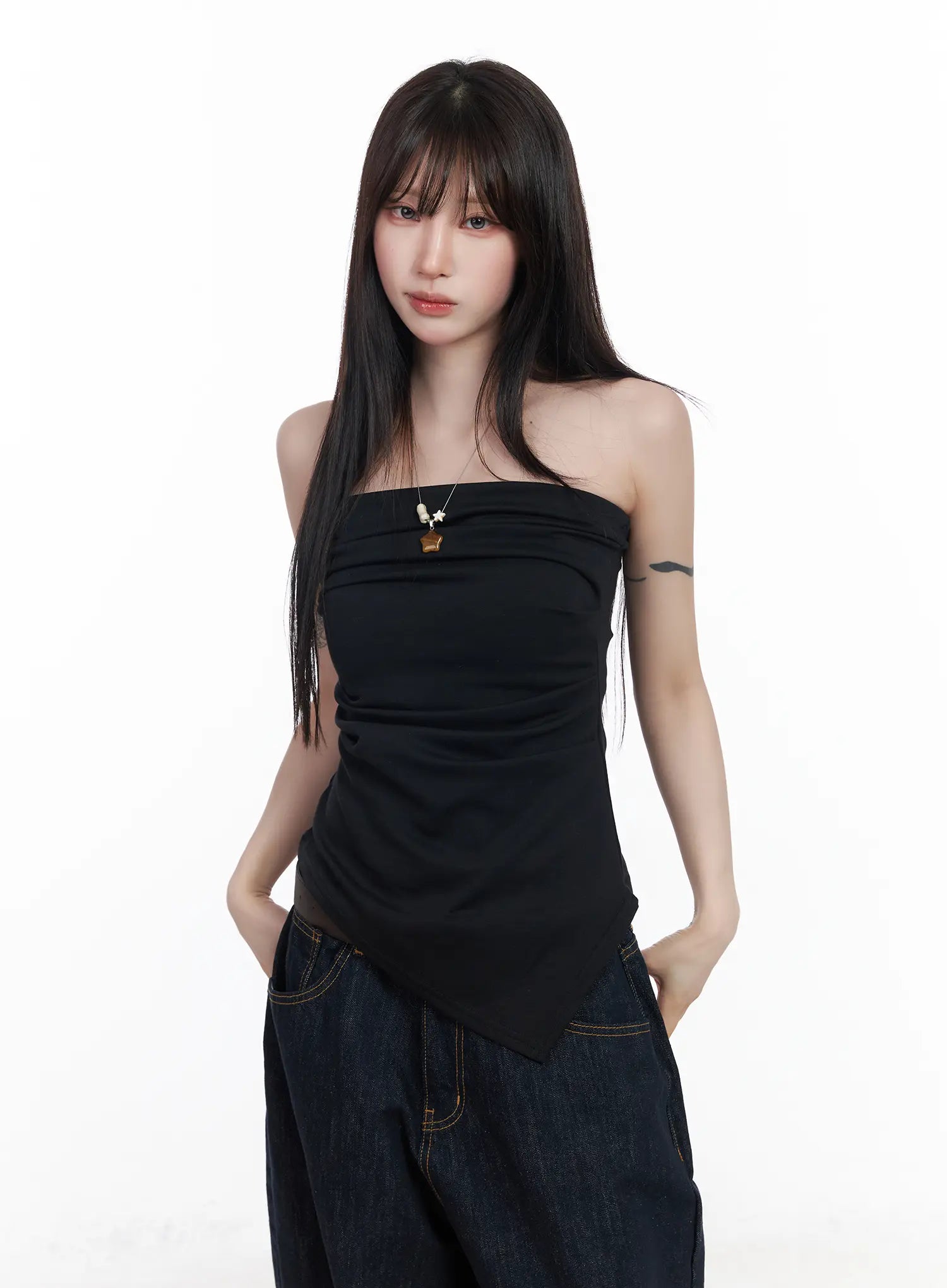 Asymmetric Shirred Tube Top CF523