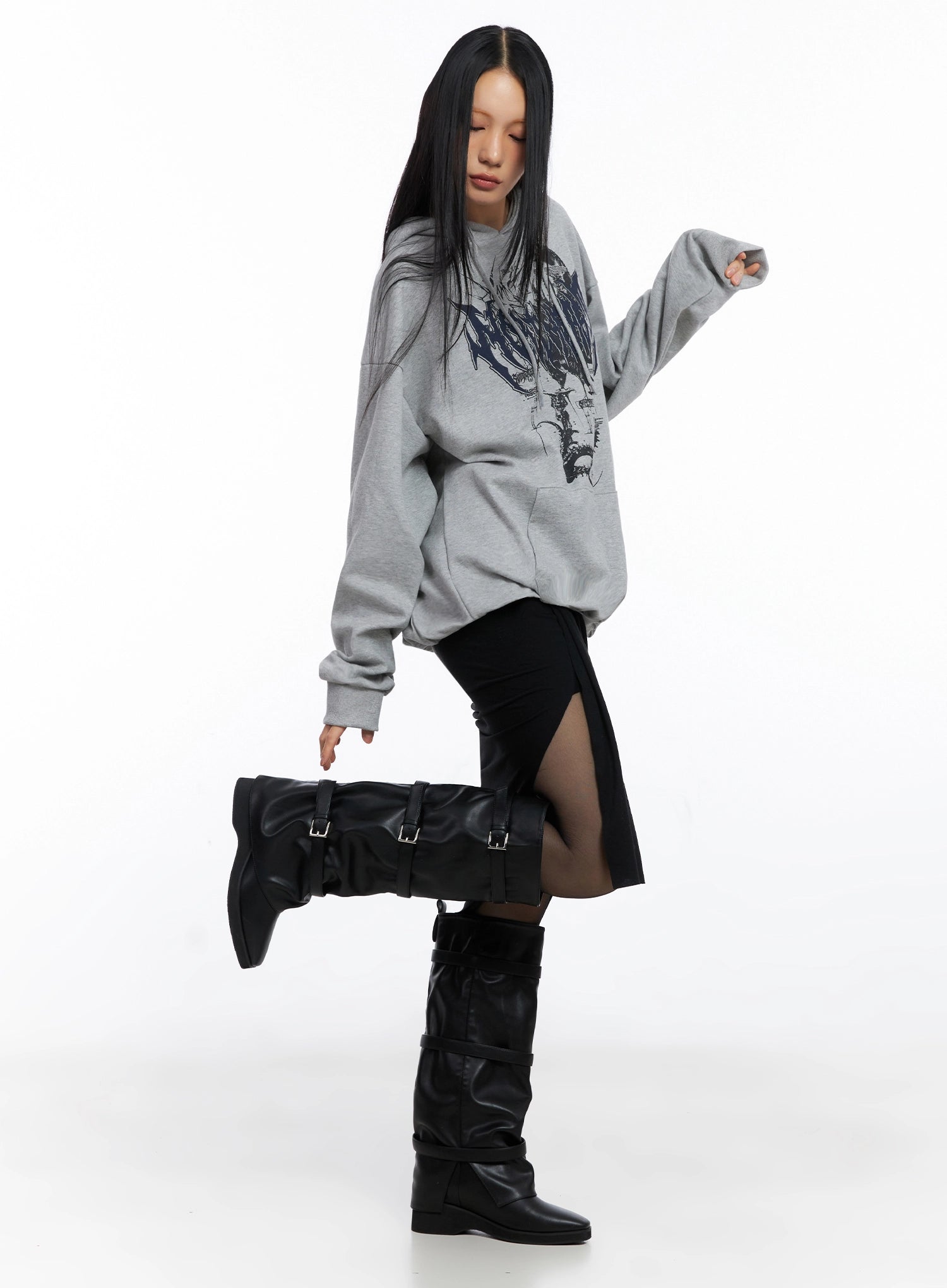 Asymmetrical Slit Midi Skirt IO516