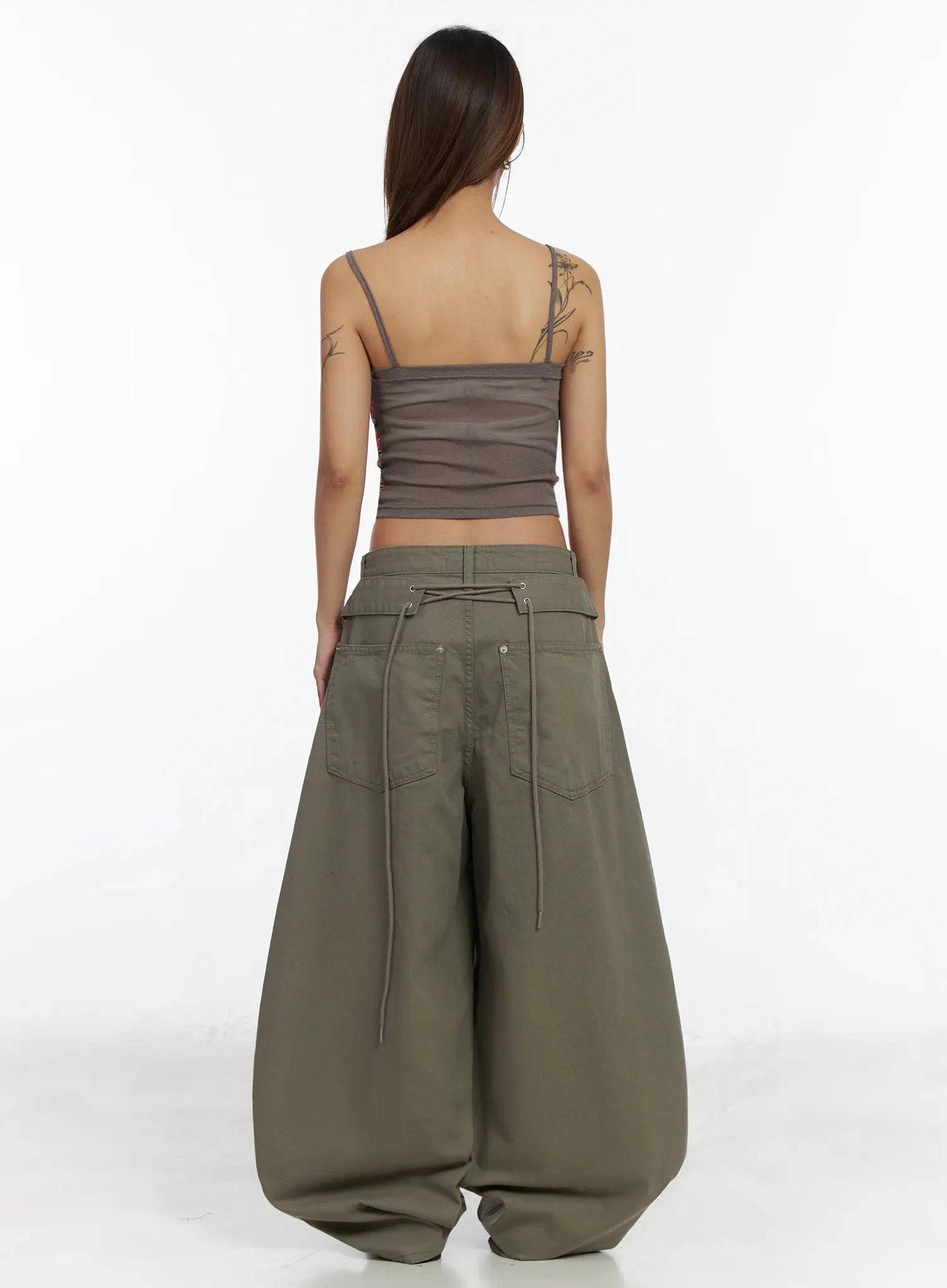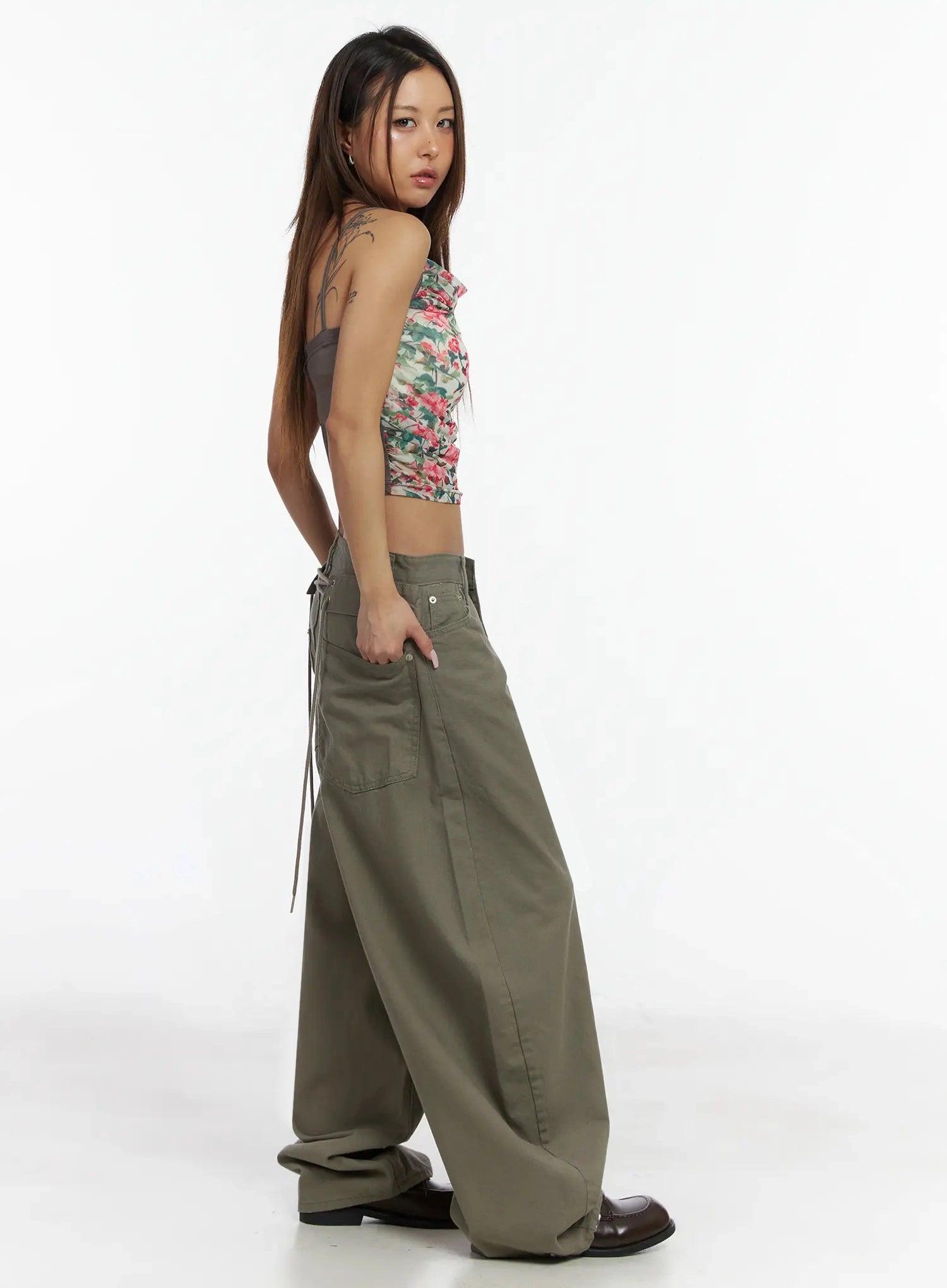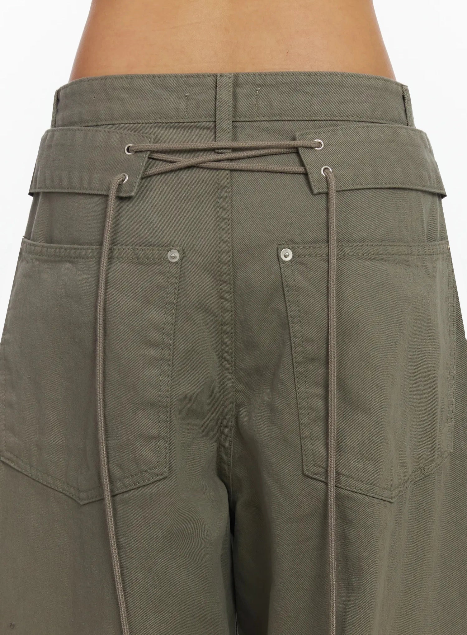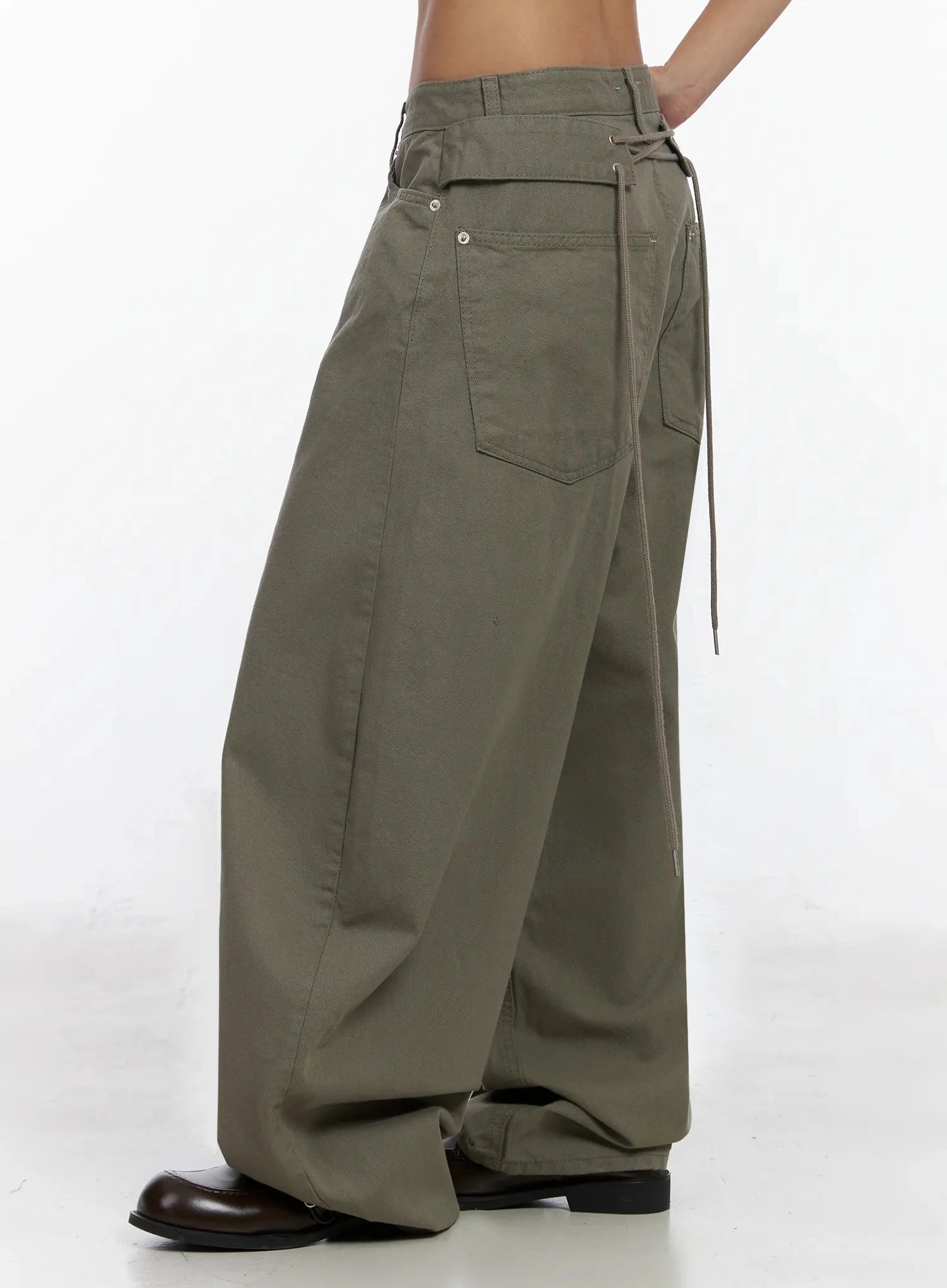Back Corset Belt Wide-Leg Cotton Pants IA527