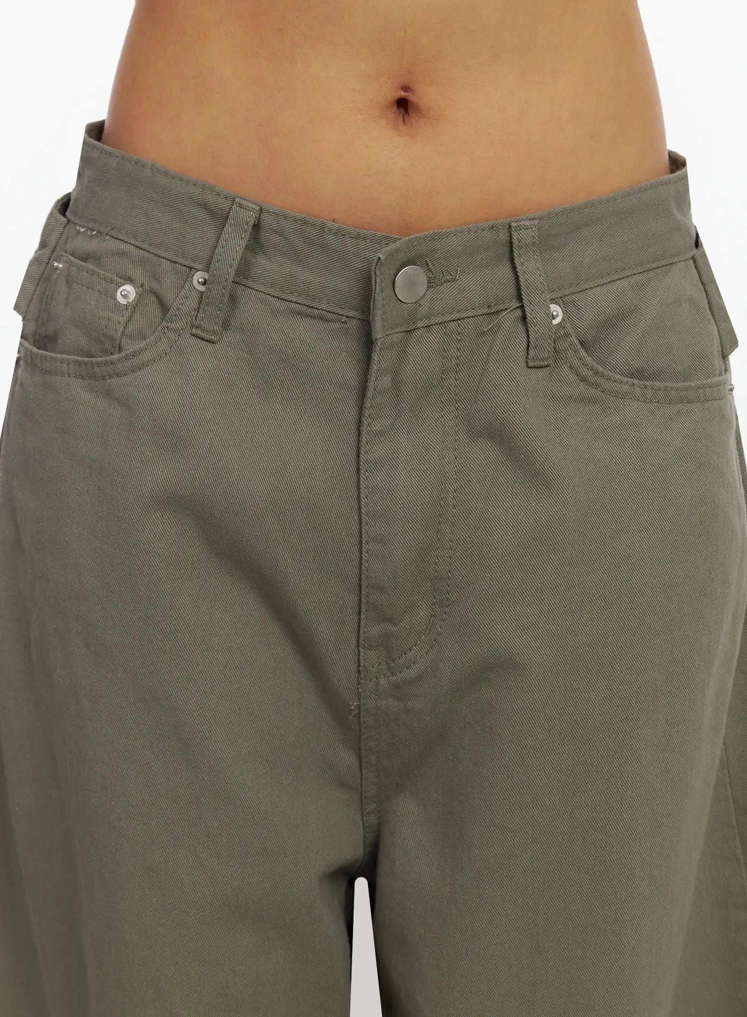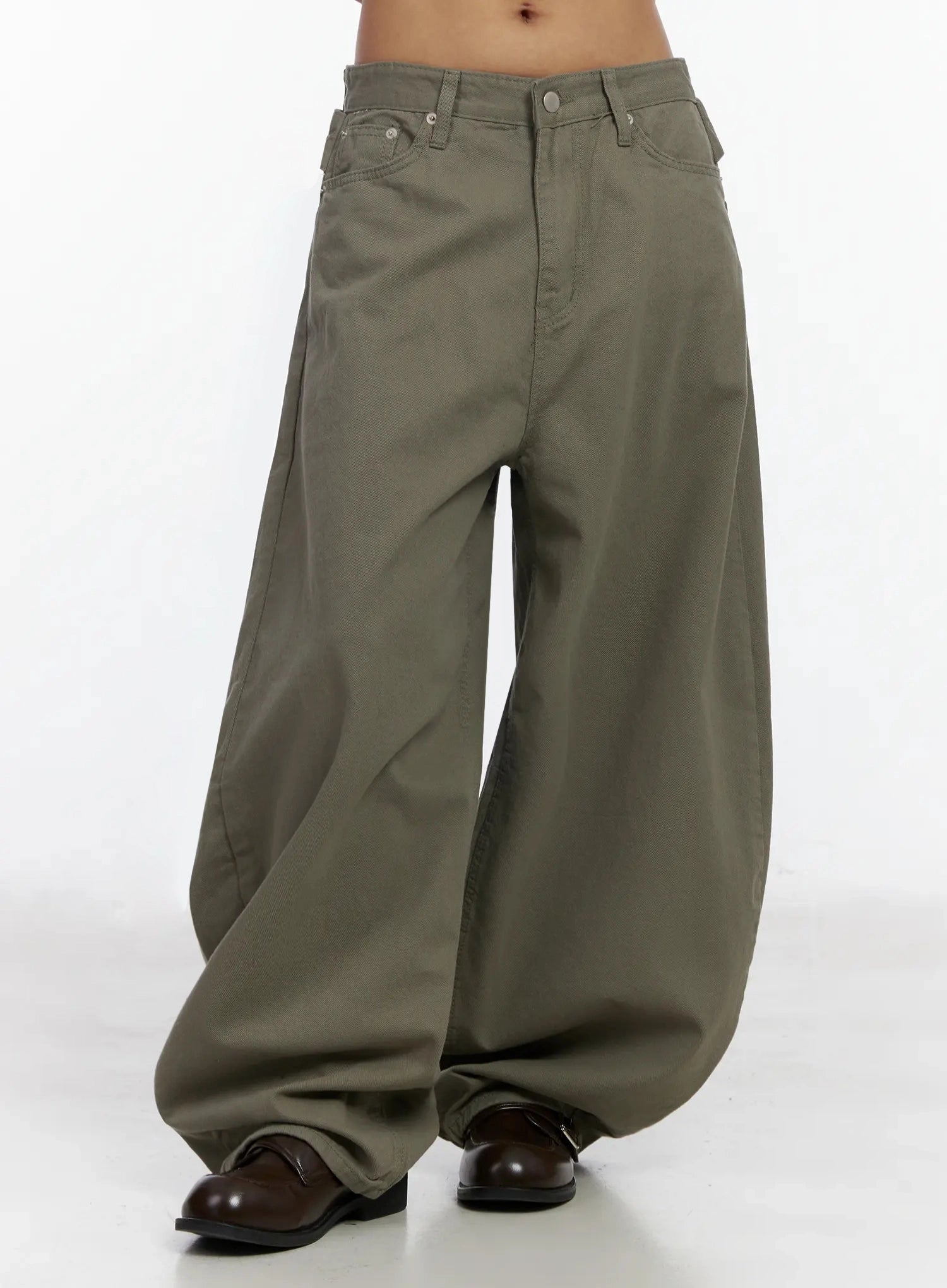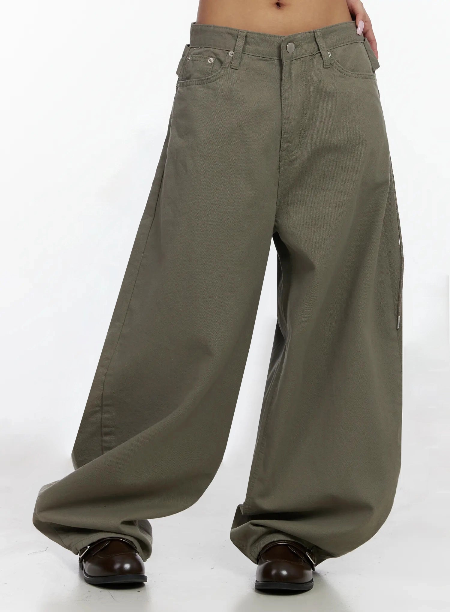 Back Corset Belt Wide-Leg Cotton Pants IA527
