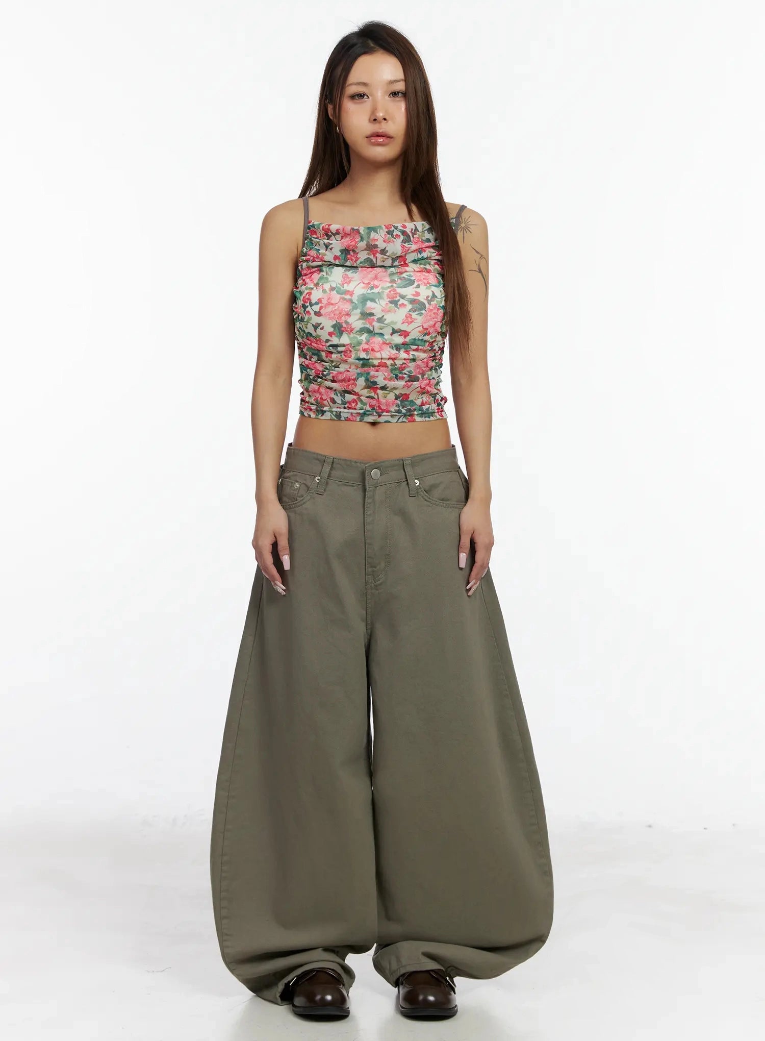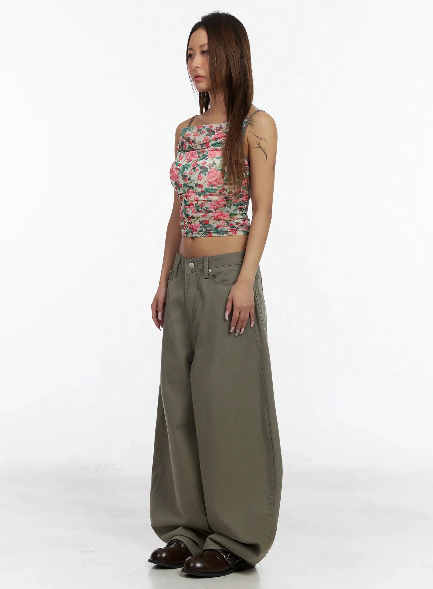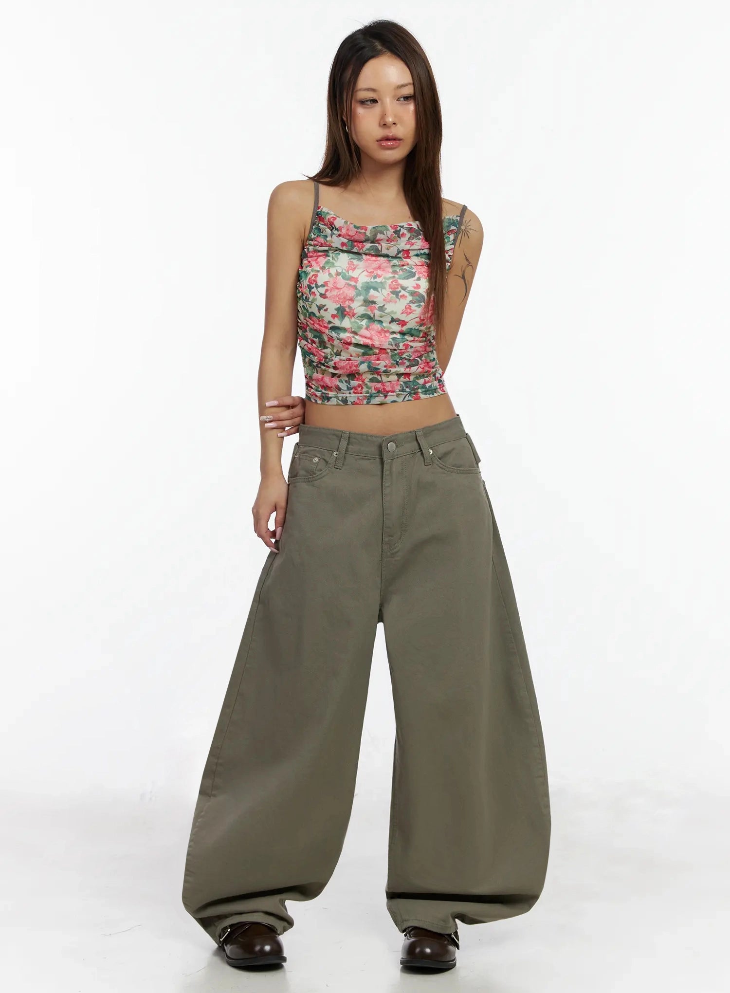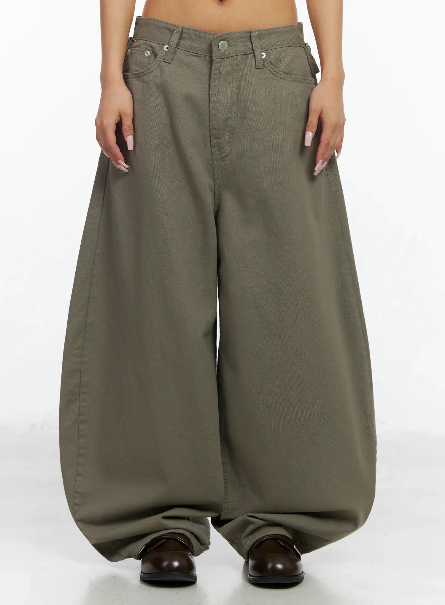 Back Corset Belt Wide-Leg Cotton Pants IA527