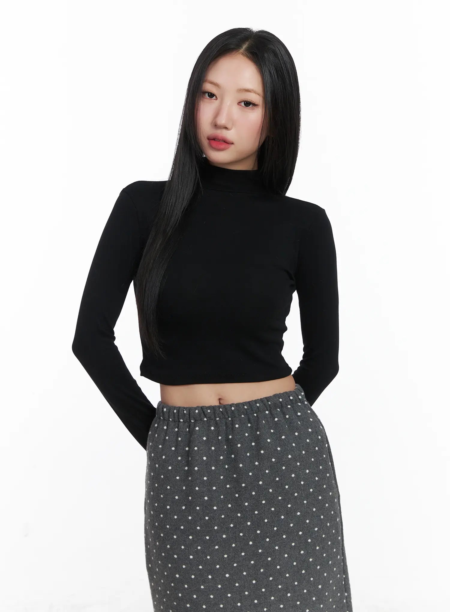 Basic Mock Neck Long Sleeve Crop Top CD529