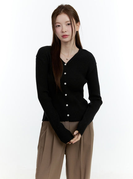 Basic Ribbed V-Neck Cardigan CF503