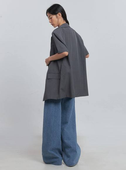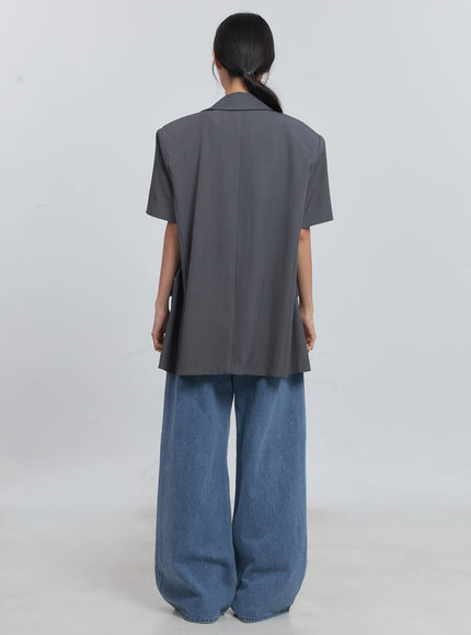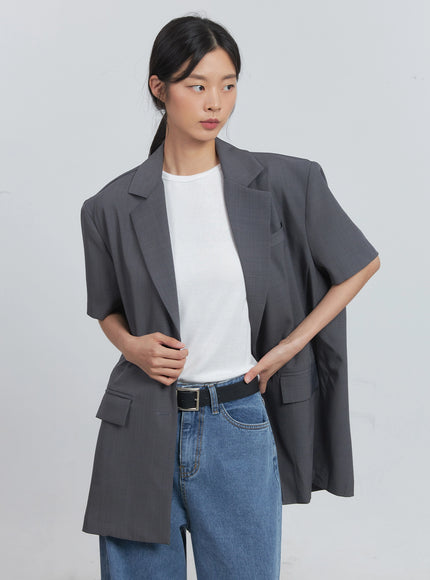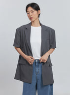 Basic Short-Sleeve Blazer (Dark Gray) IU512