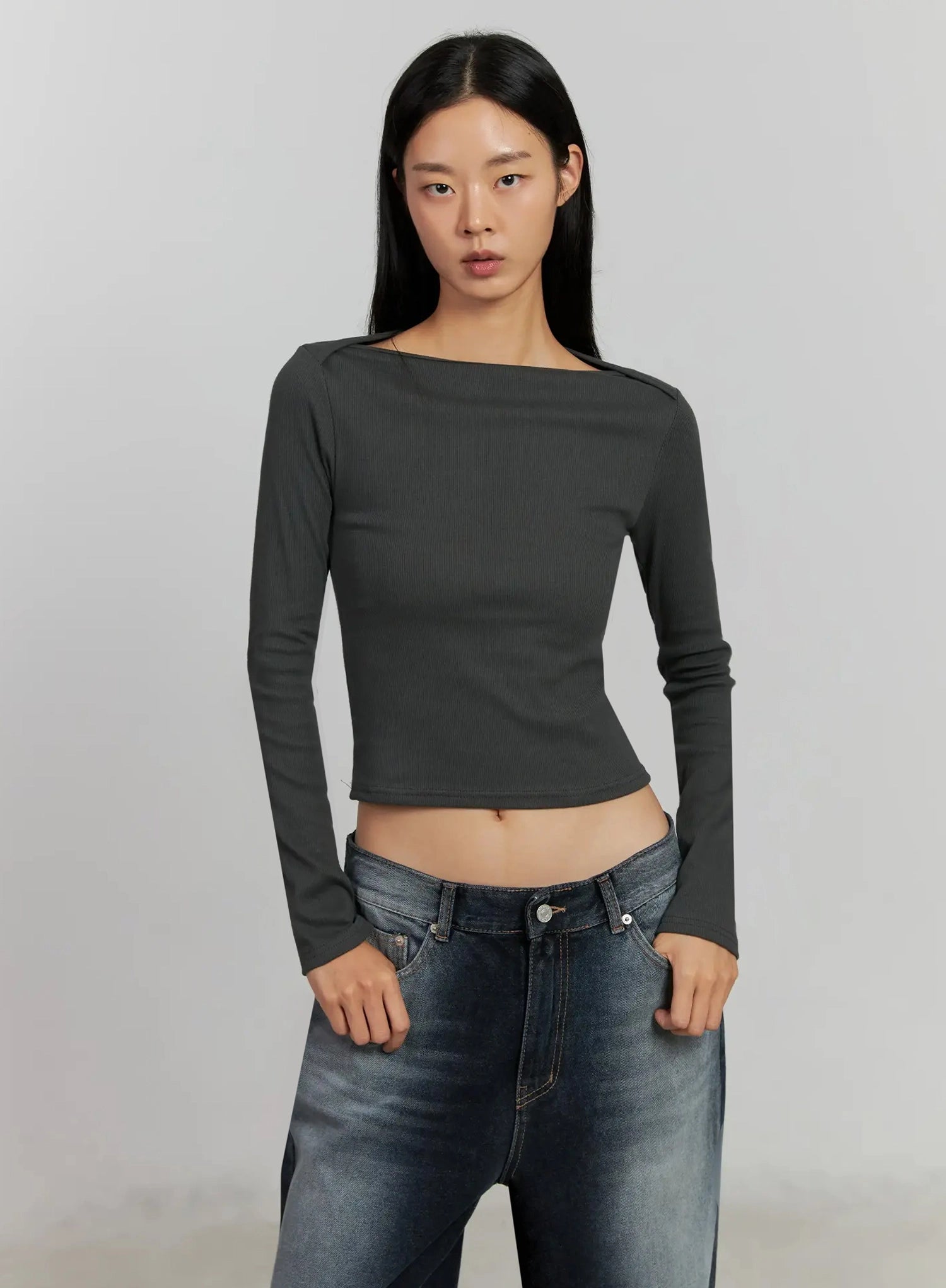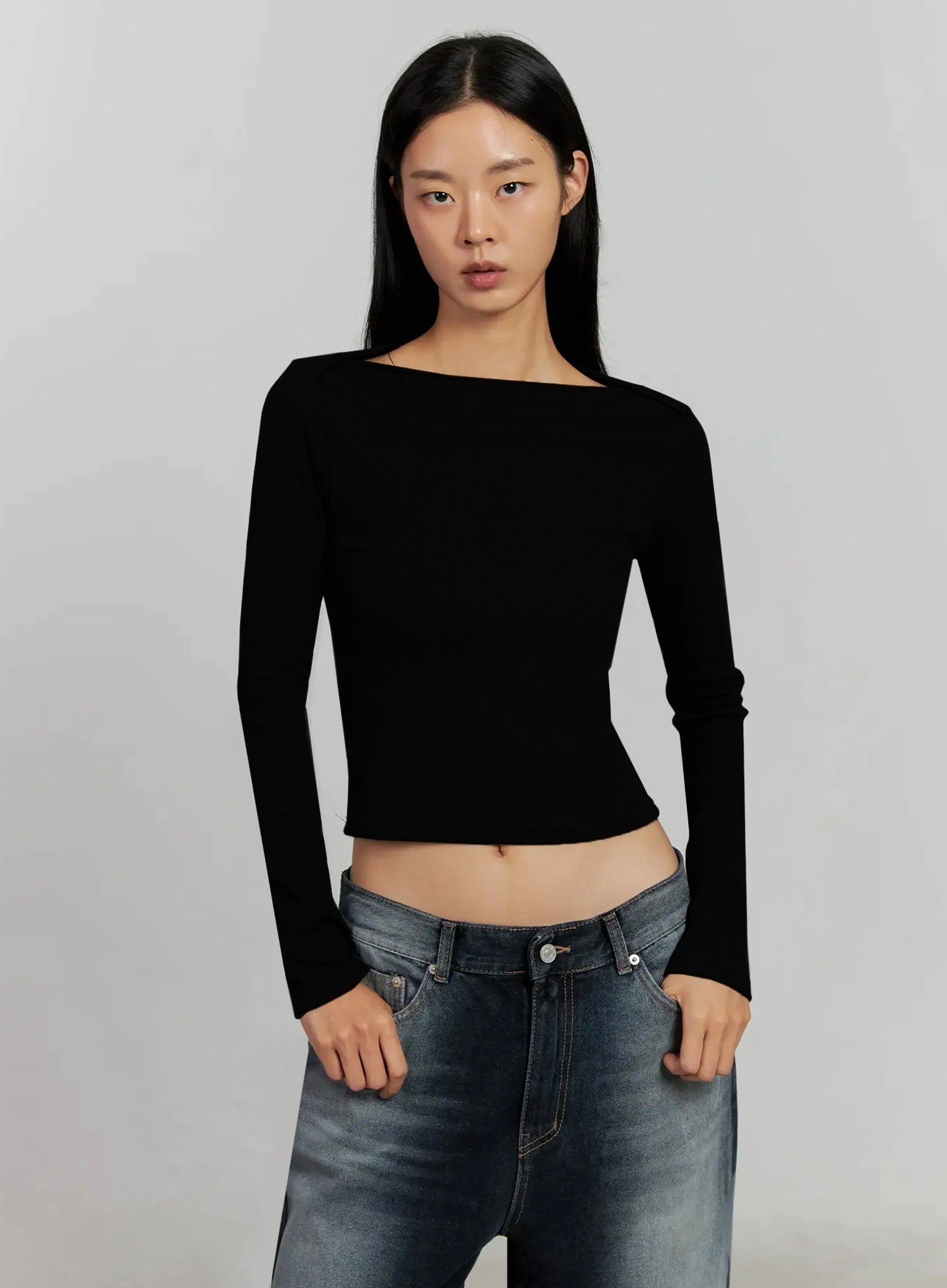 Boat Neck Long Sleeve Top IJ505