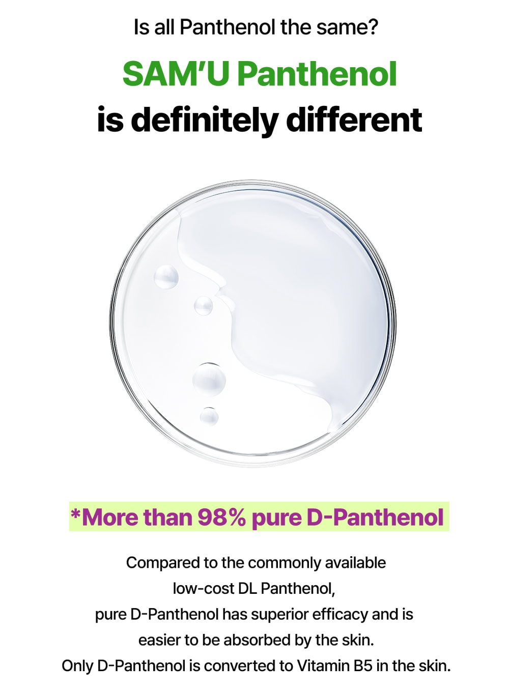 - Panthenol and Ceramide help strengthen the skin barrier, preventing moisture loss and protecting the skin from external irritants.