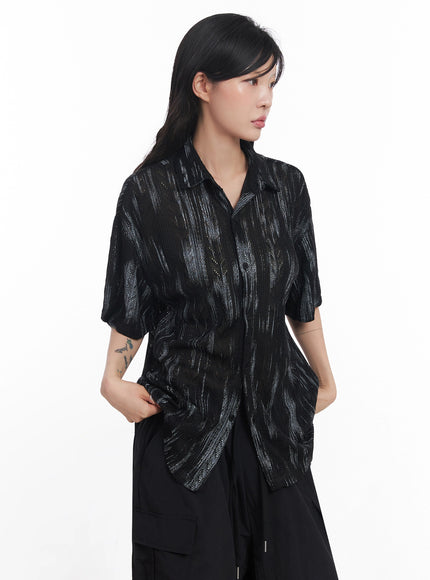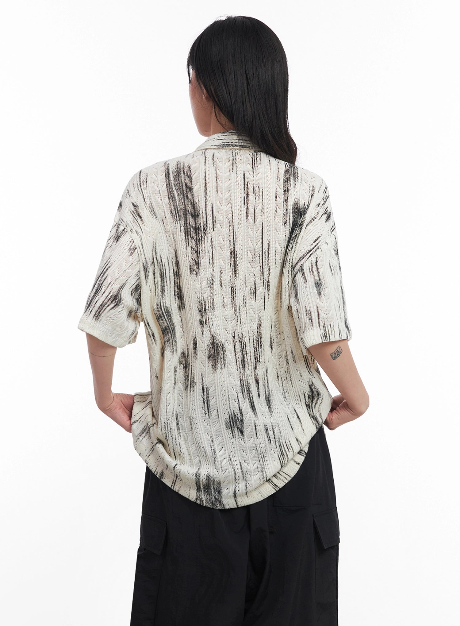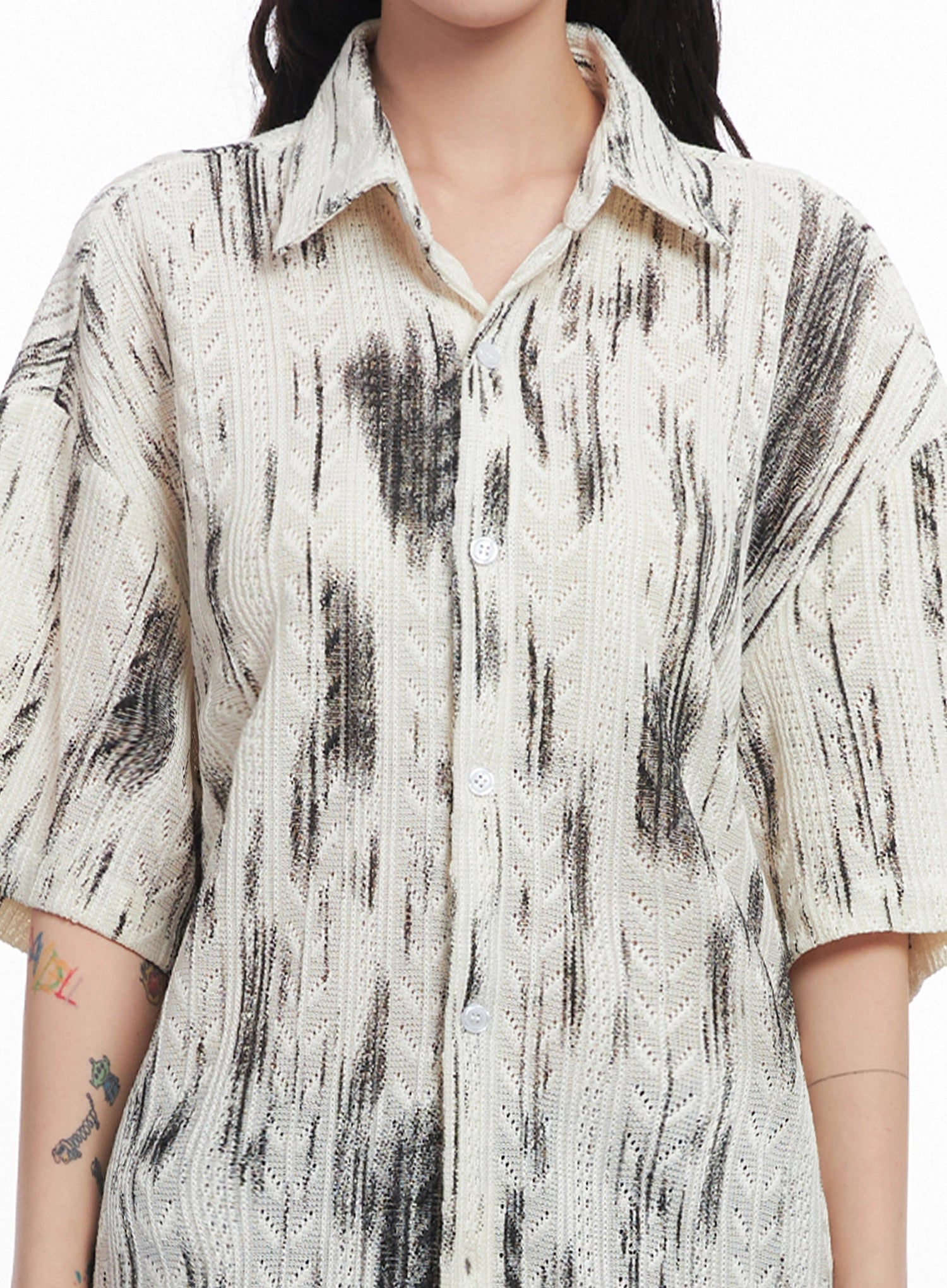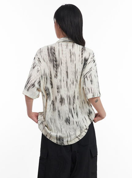 Brushstroke Knit Collared Button-Up Top IC503