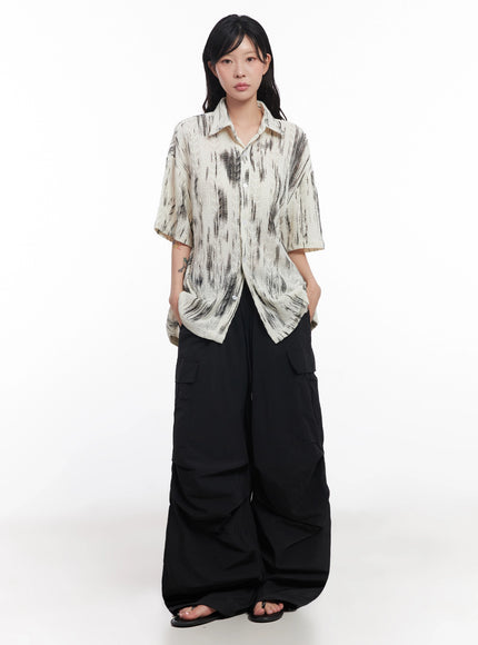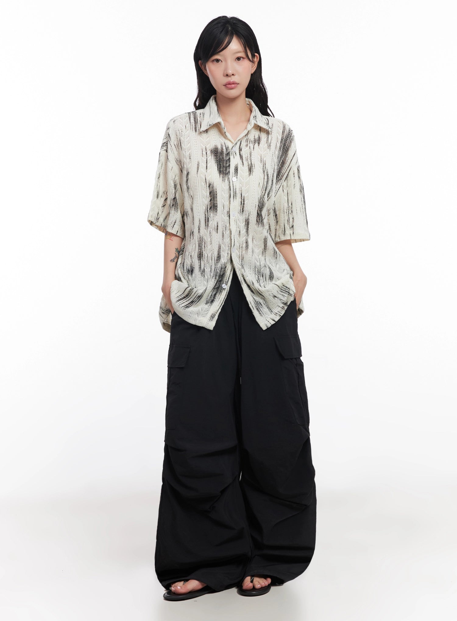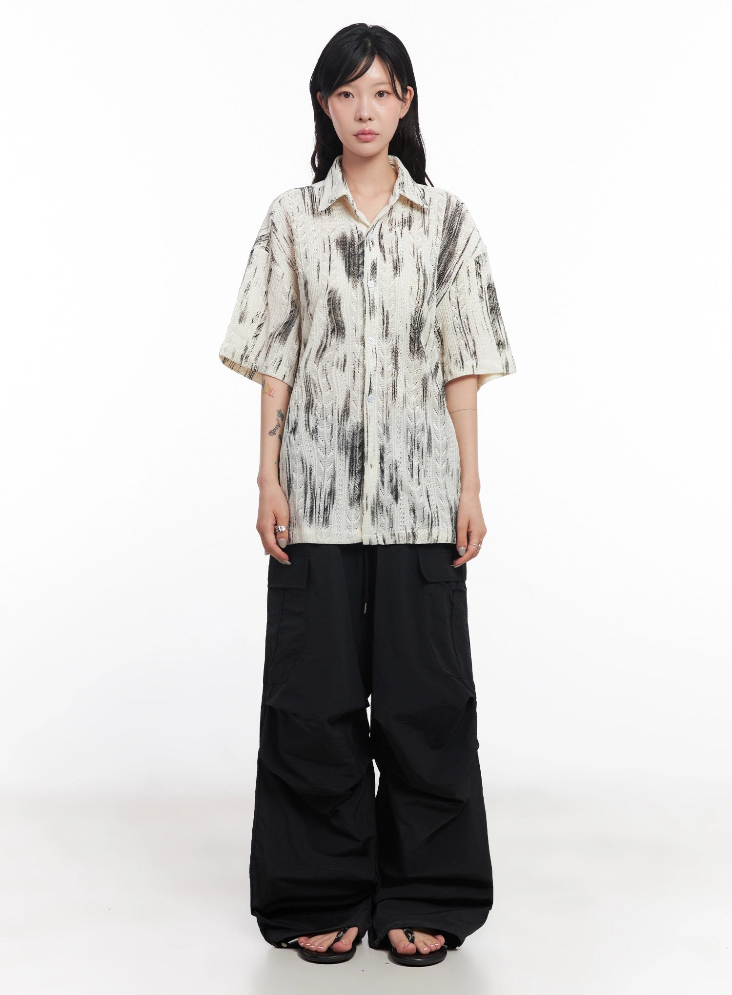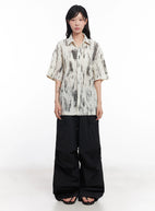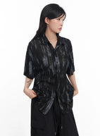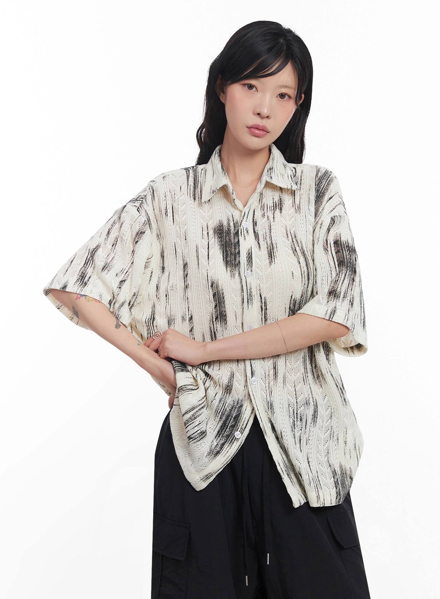 Brushstroke Knit Collared Button-Up Top IC503