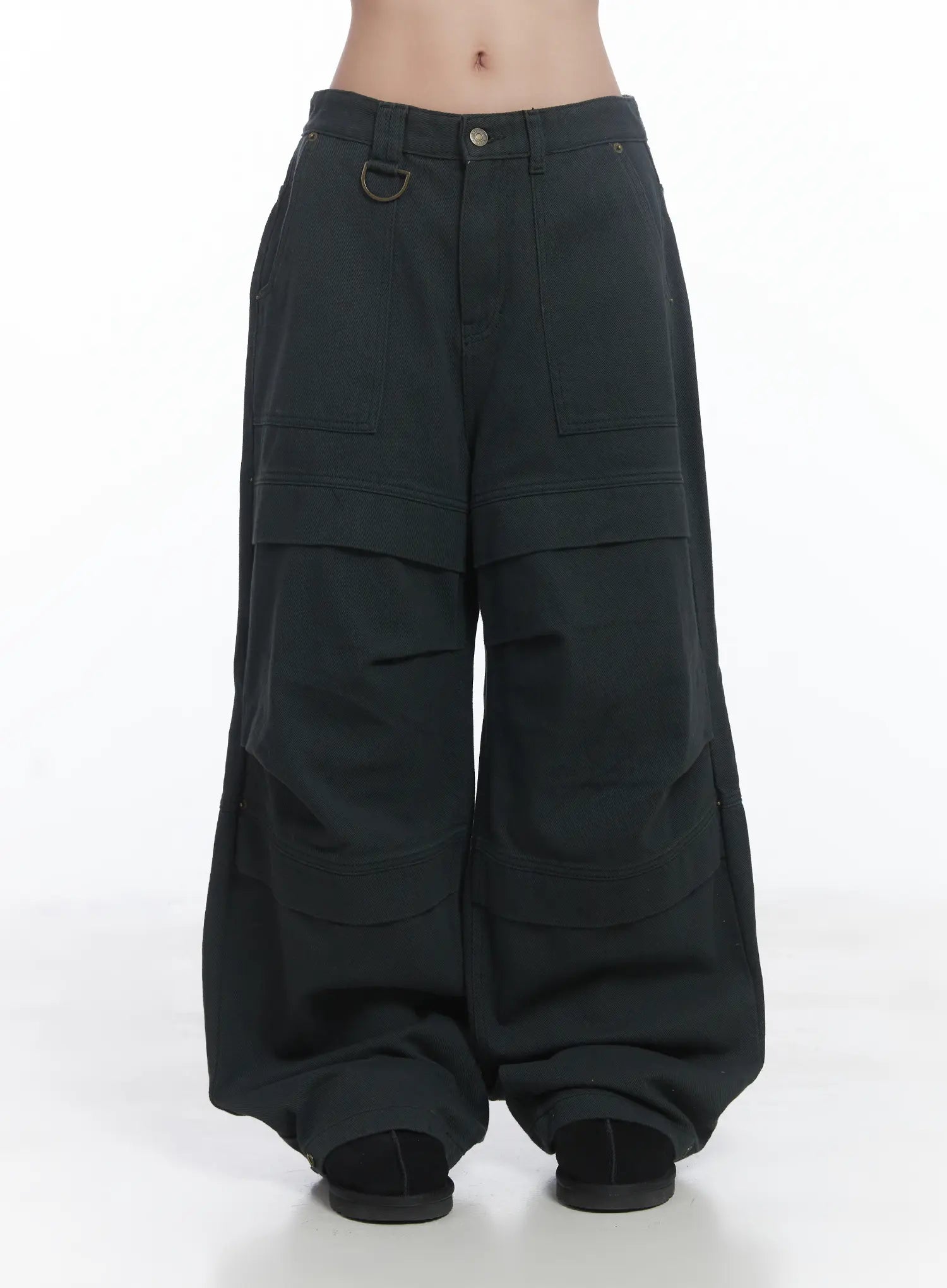Button Trim Wide-Leg Pants CJ514