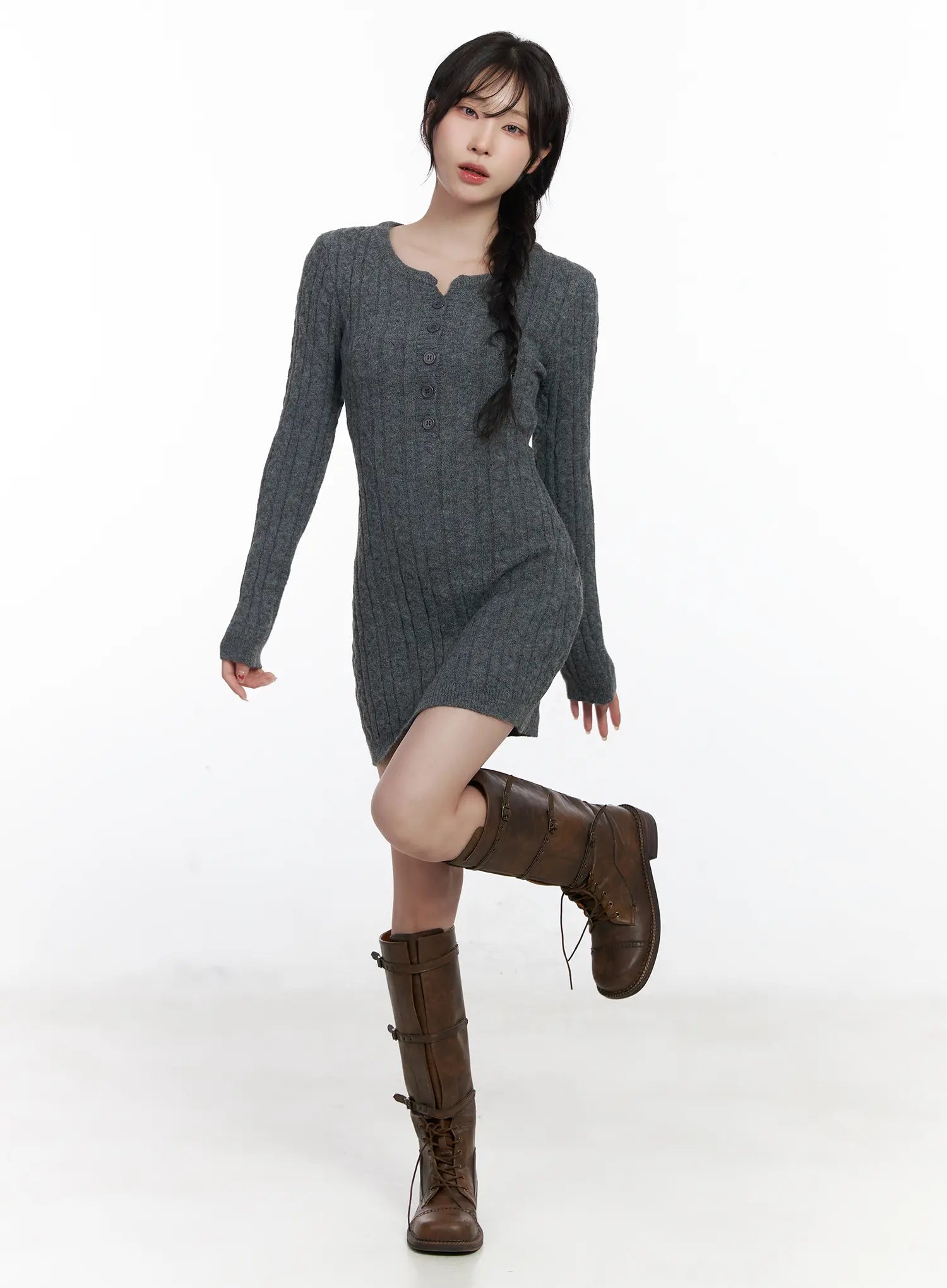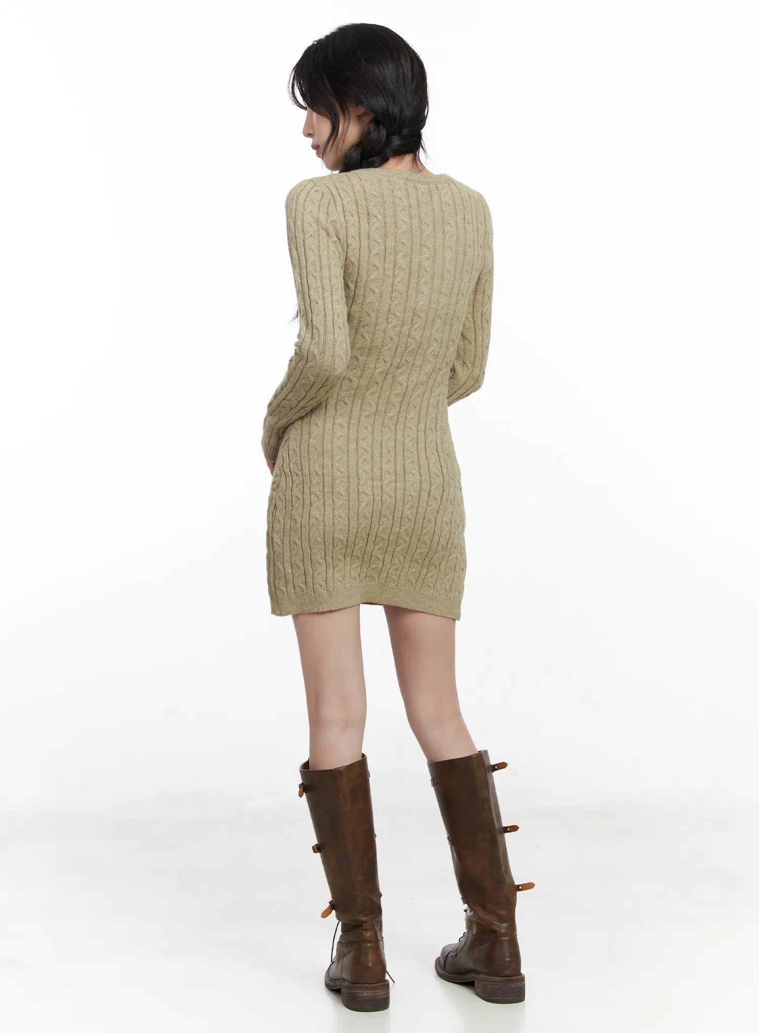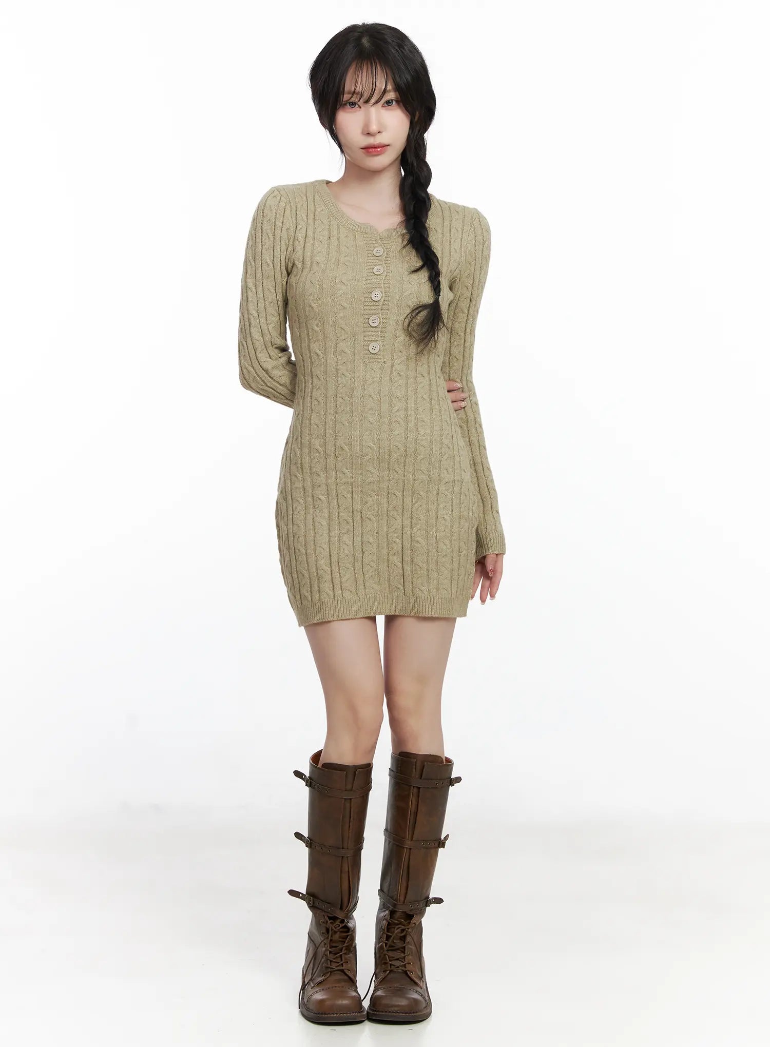 Cable Knit Button Sweater Mini Dress CJ526