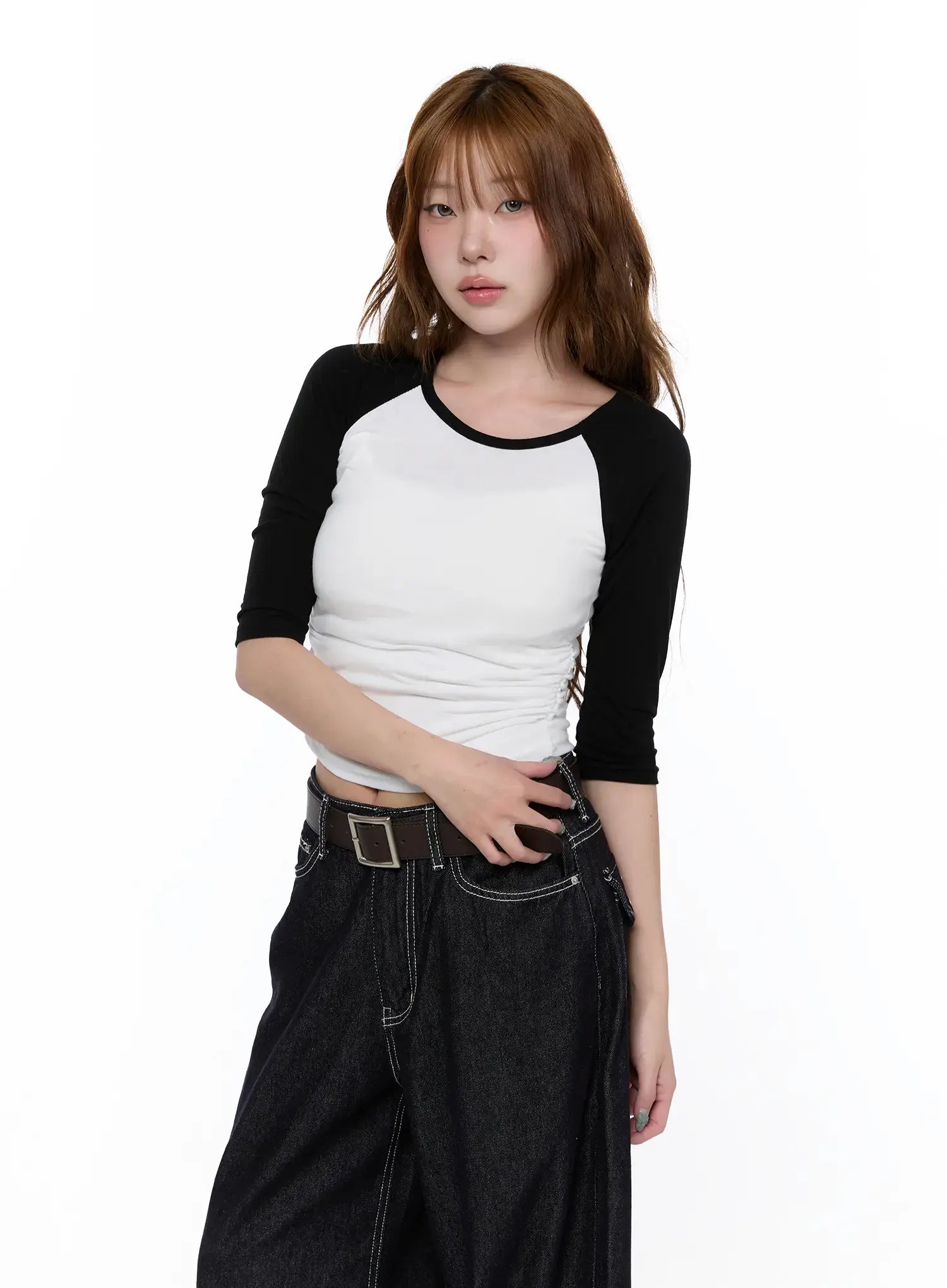 Casual Two-Tone 3/4 Sleeve Top CA521