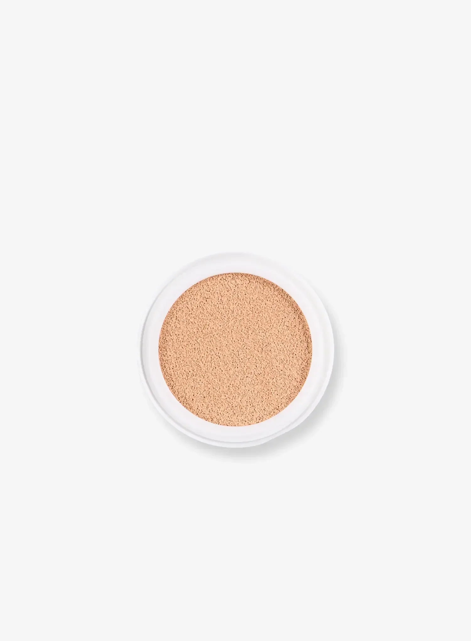 Semi-matte vegan cushion foundation provides breathable, porcelain-like coverage.