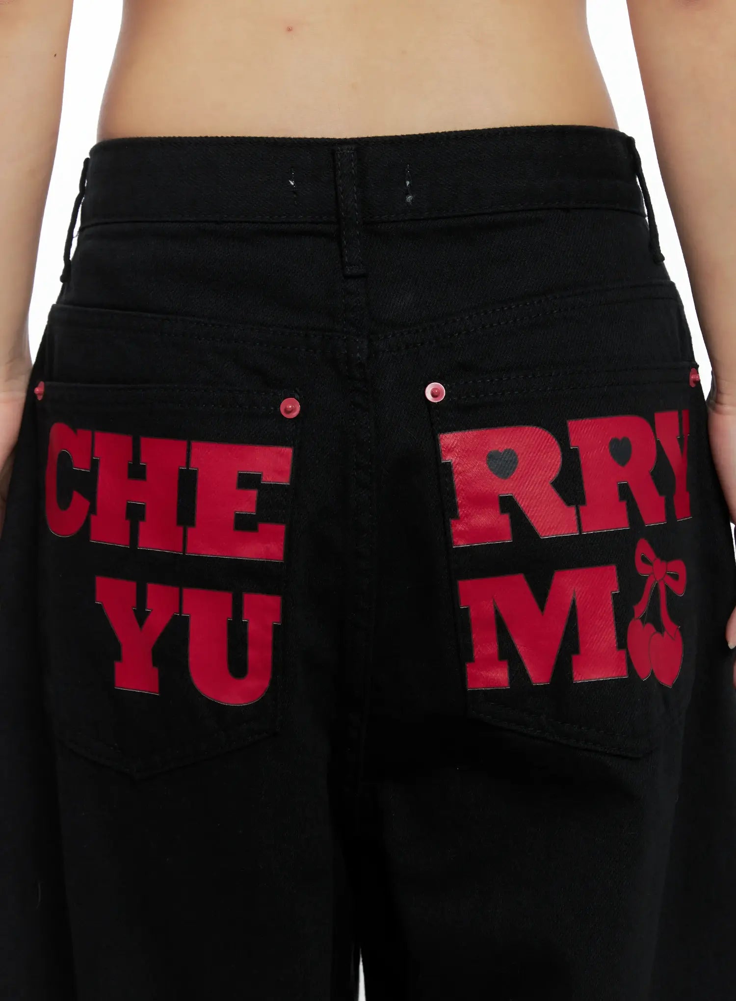 Cherry Back-Print Wide-Leg Cotton Pants CS505
