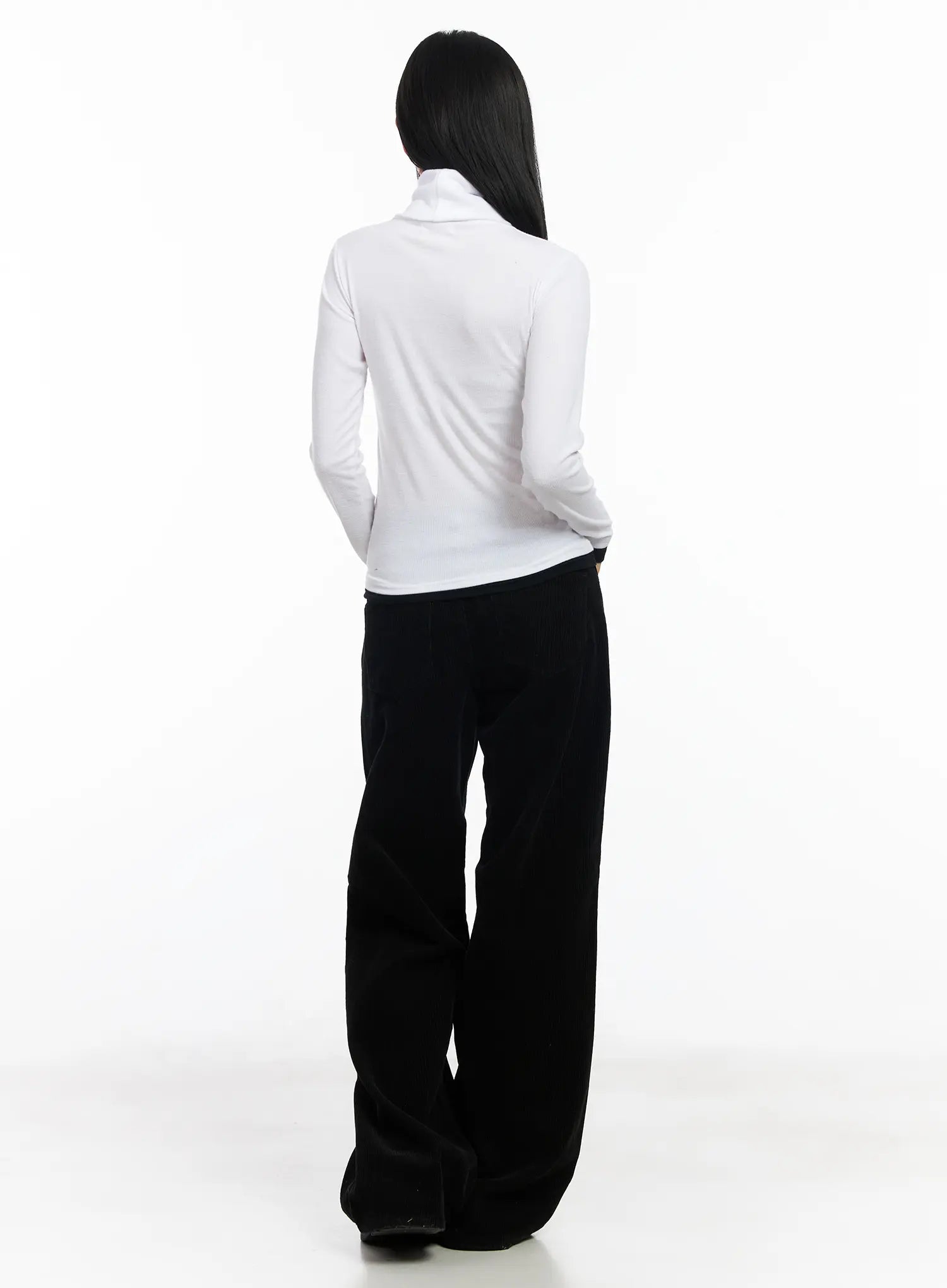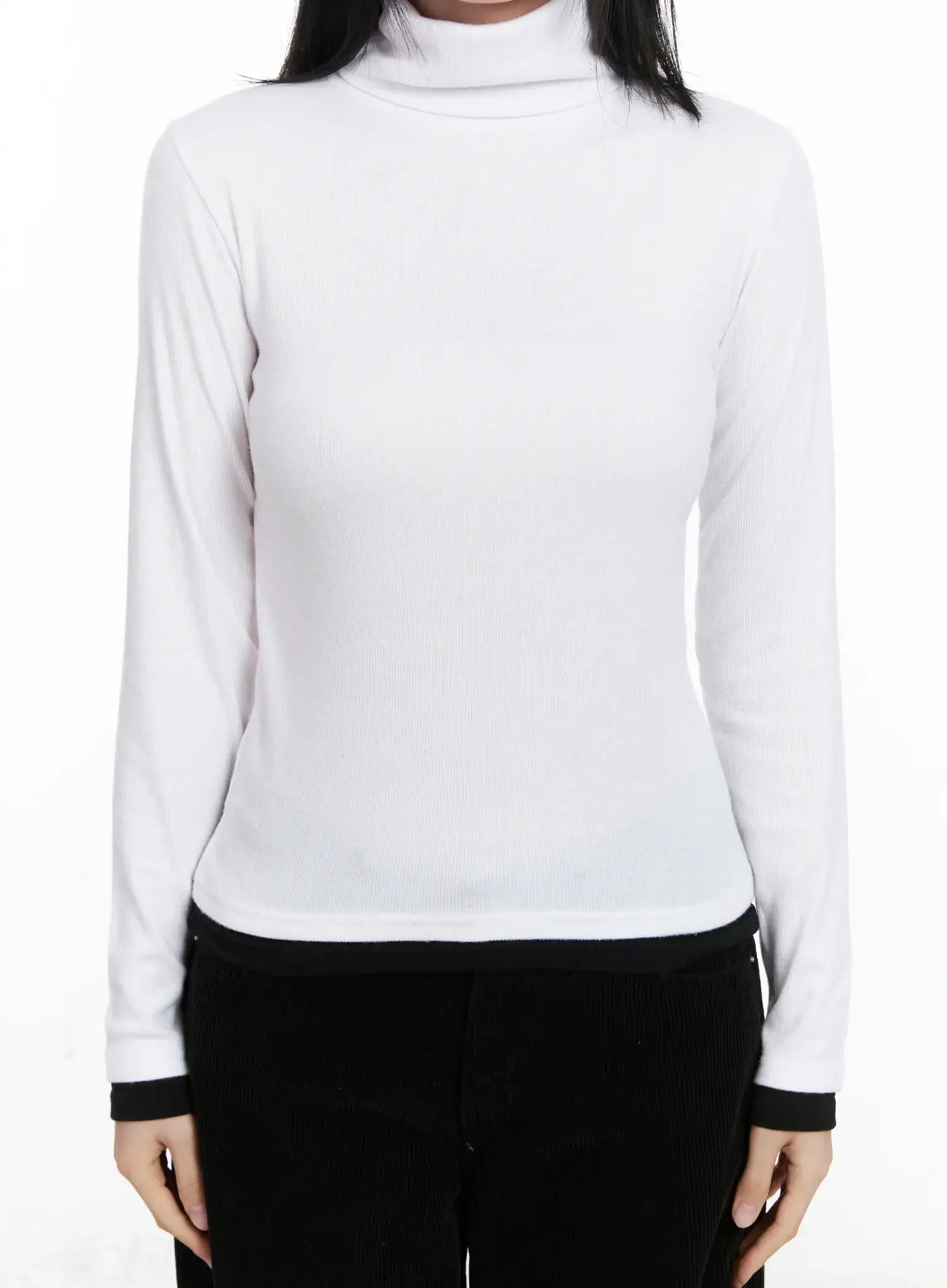 Contrast Cuff Turtleneck Long Sleeve Top CJ520