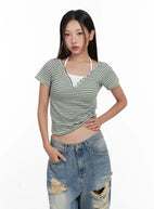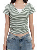 Contrast Stripe Layered Halter Tee CL518