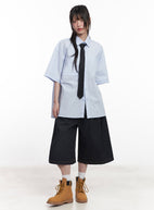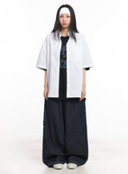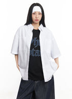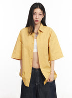 Cotton Collared Oversize Shirt IY529